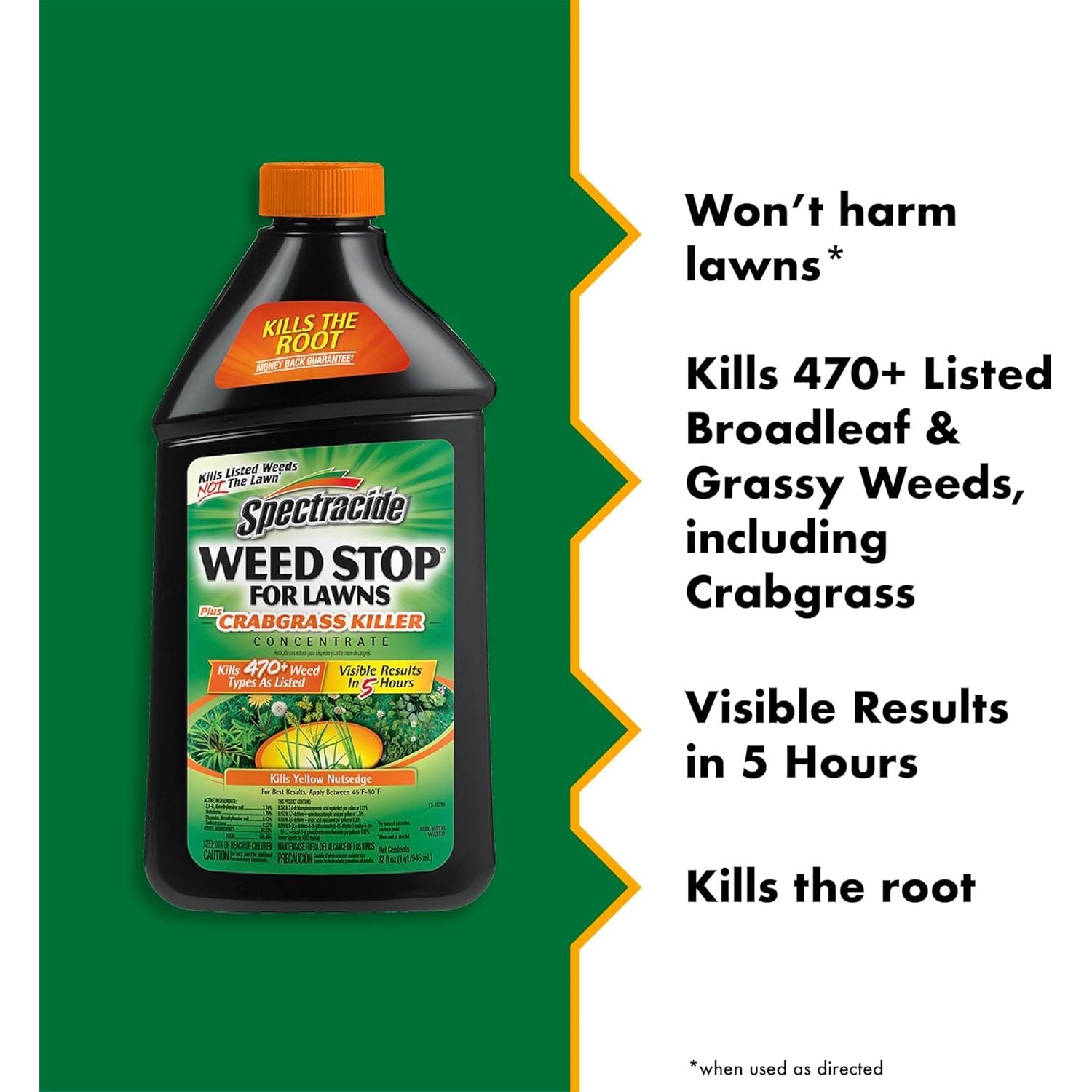 - Spectracide Weed Stop For Lawns Plus Crabgrass Killer Concentrate, Weed Killer, 32 Ounces