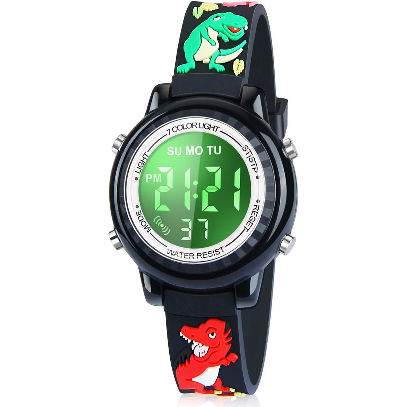 - Easy to Read: The kids toys watch has 7 colors LED backlight, large dial and numbers. Just press the backlight button on the left for 3 seconds and these seven backlight colors can be adjusted, which not only satisfy child's curiosity, but also clearly see the time at night.