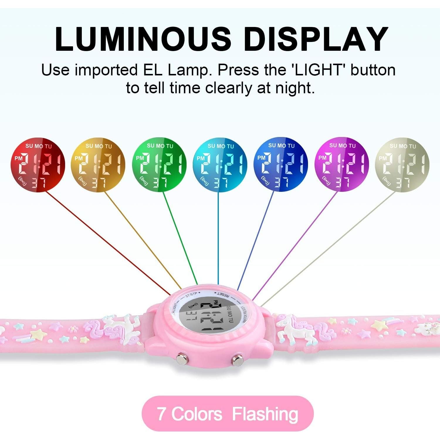 Waterproof LED Kids Watches with Alarm - Kids Toys Gifts for Girls Age 3-10