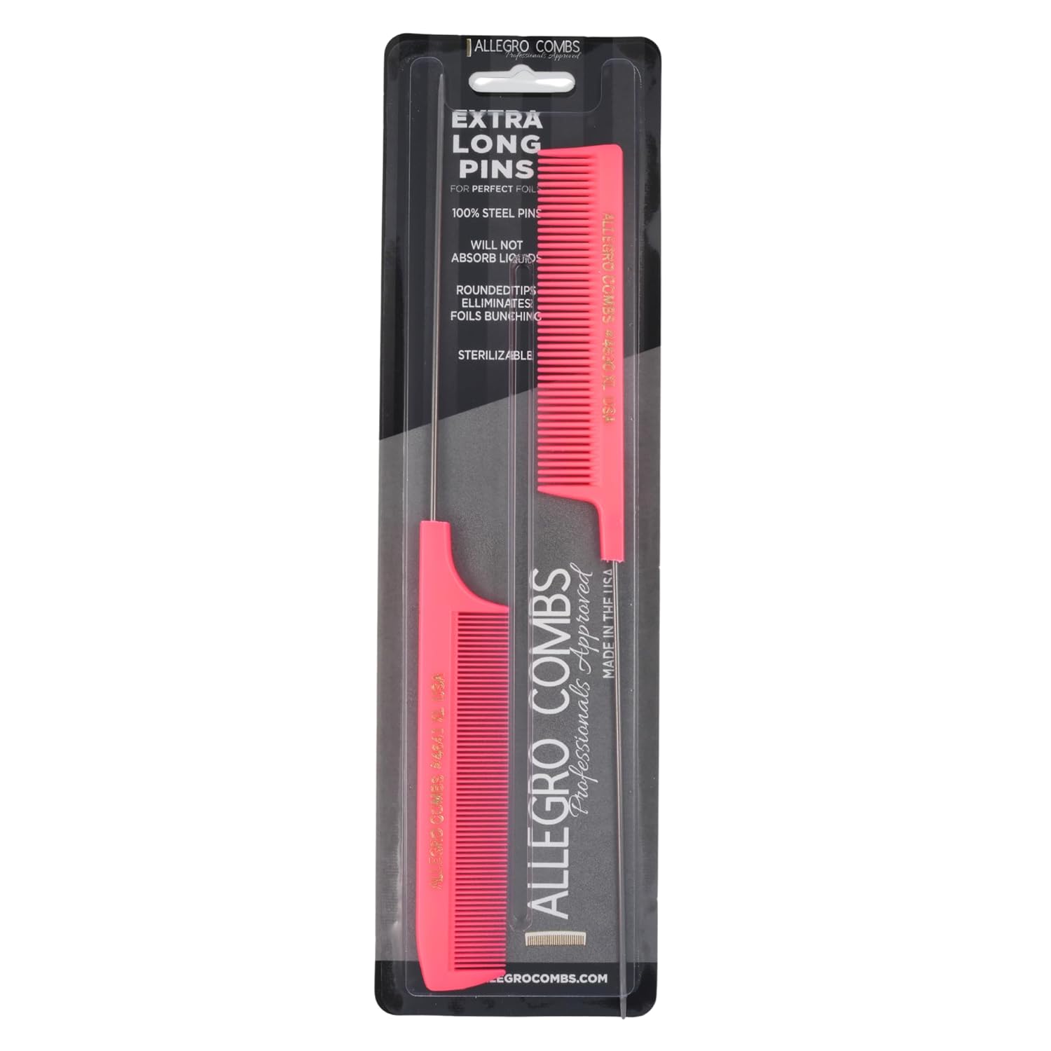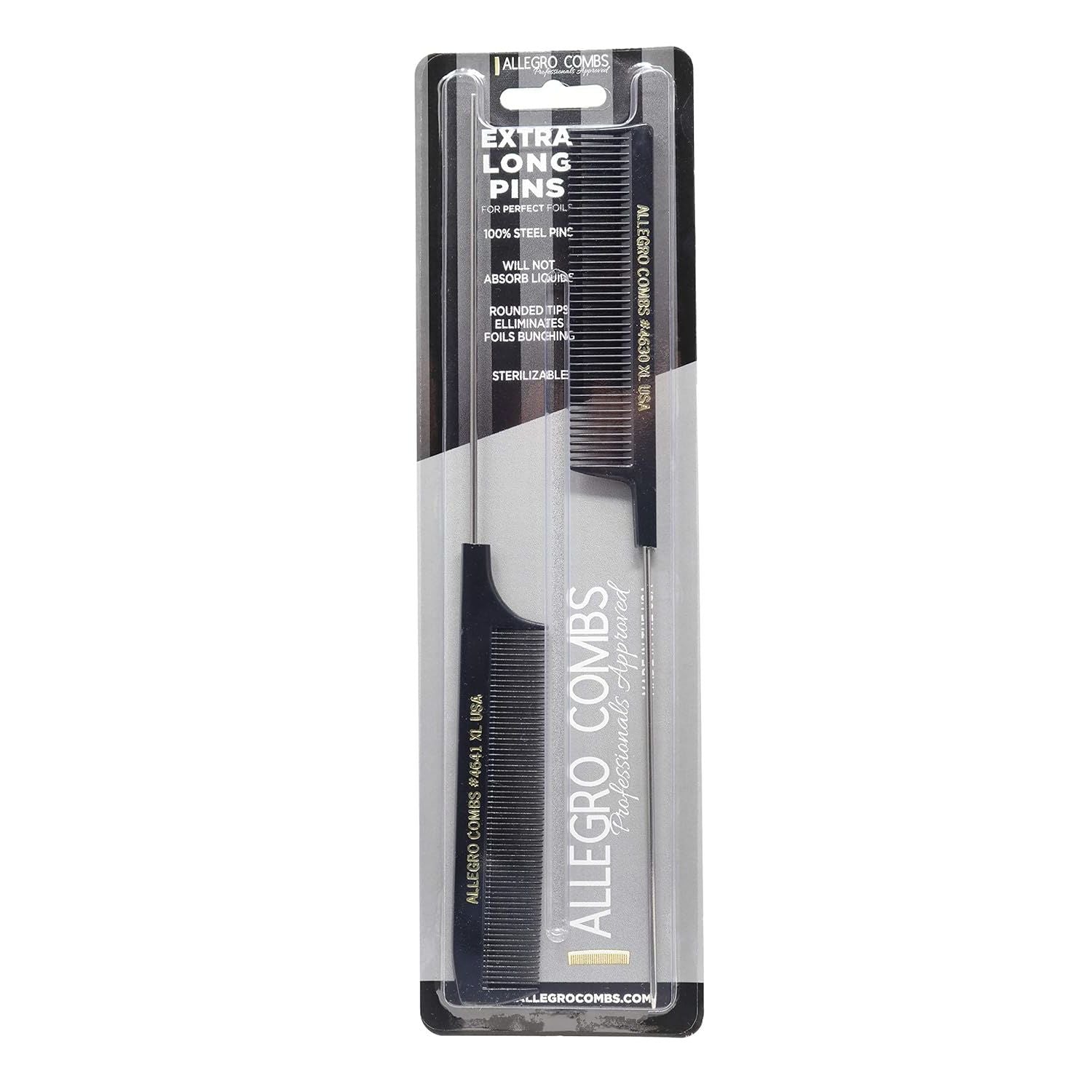 - EXTRA LONG PINS XL METAL PIN COMBS STAINLESS STEEL - Long tail foiling combs with rounded metal tip to easily part your hair. Two long tail foiling comb with different teeth types on each comb. Made in the USA. Hair foils combs. Extra long metal pins enables perfect foils. Dimension of the longest : L 9.75 x W 0.92 x 0.21 inches and of shorter comb: L 9.4 x 0.9 x 0.19 inches. These combs are perfect to be used with the longest aluminum foil sheets.
