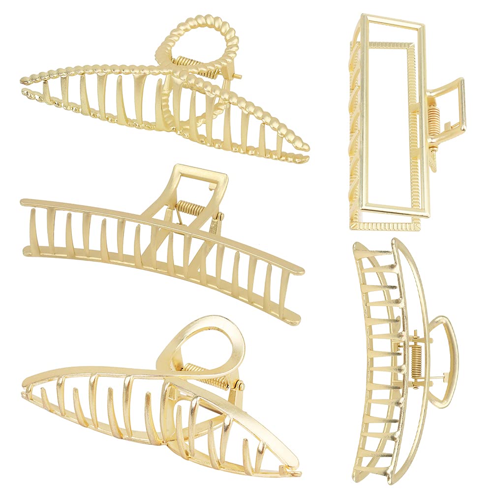 - What You Get: 5pieces metal claw clips in 1 set which are made of high-quality alloy, each one is durable and non-slip, will not harm your hair. Those fashion metal hair clips can hold your hair firmly, are not easy to damage, and will not fade