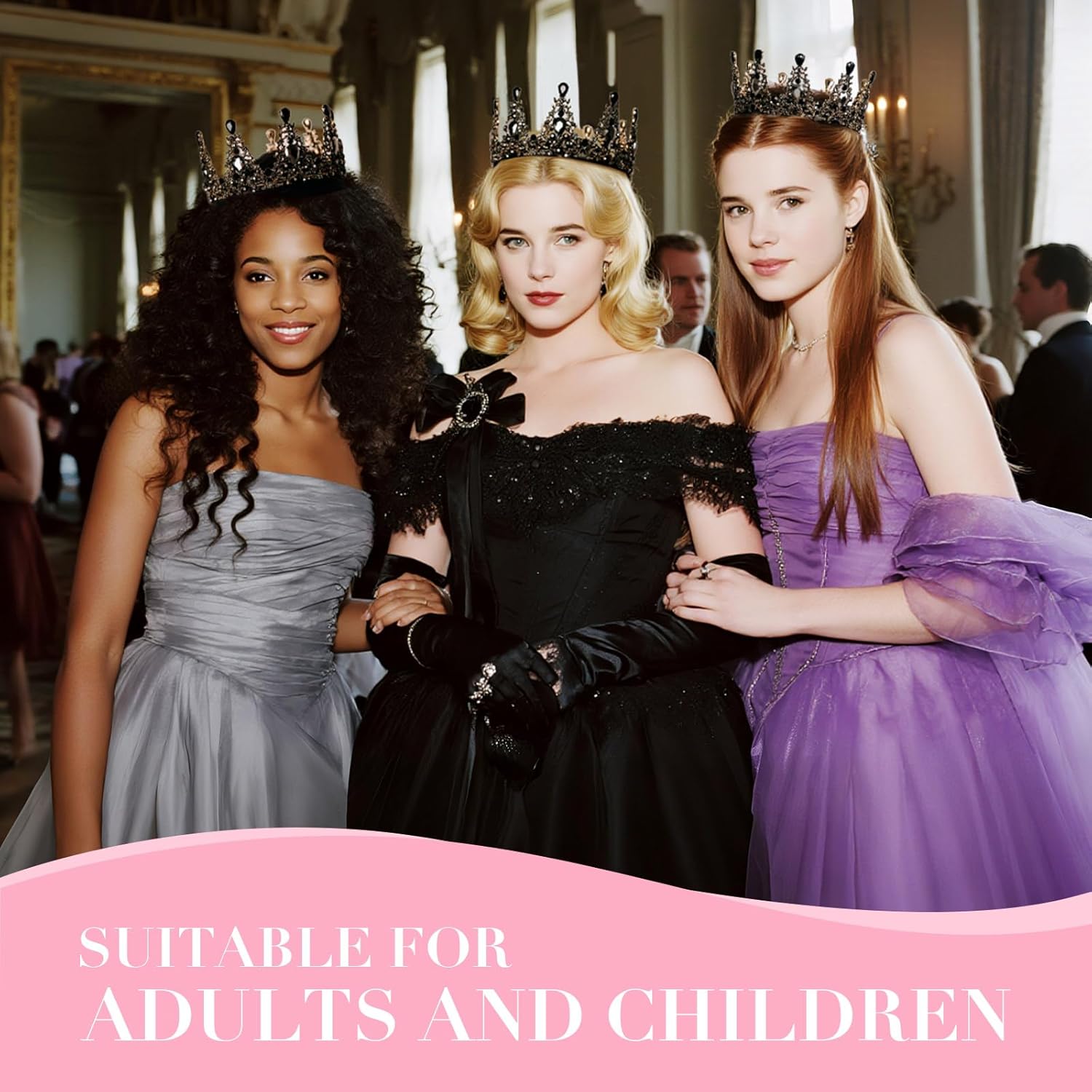 - One Size Fit All: This black princess tiara are suitable for women and girls. SIZE: Diameter approx. 4.9inches, High approx. 2.6inches . Whether you're having a destination wedding or a black-tie wedding, it will make you feel like a true queen