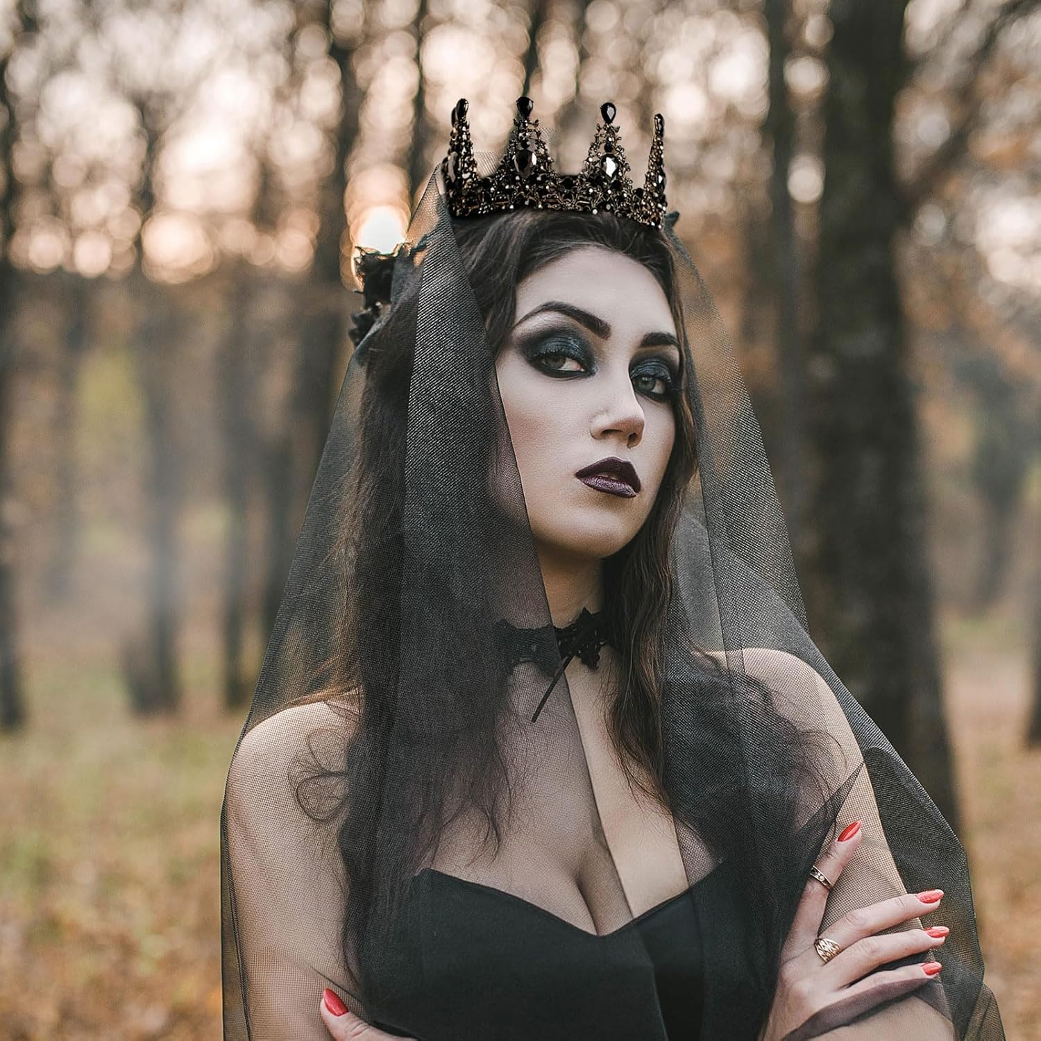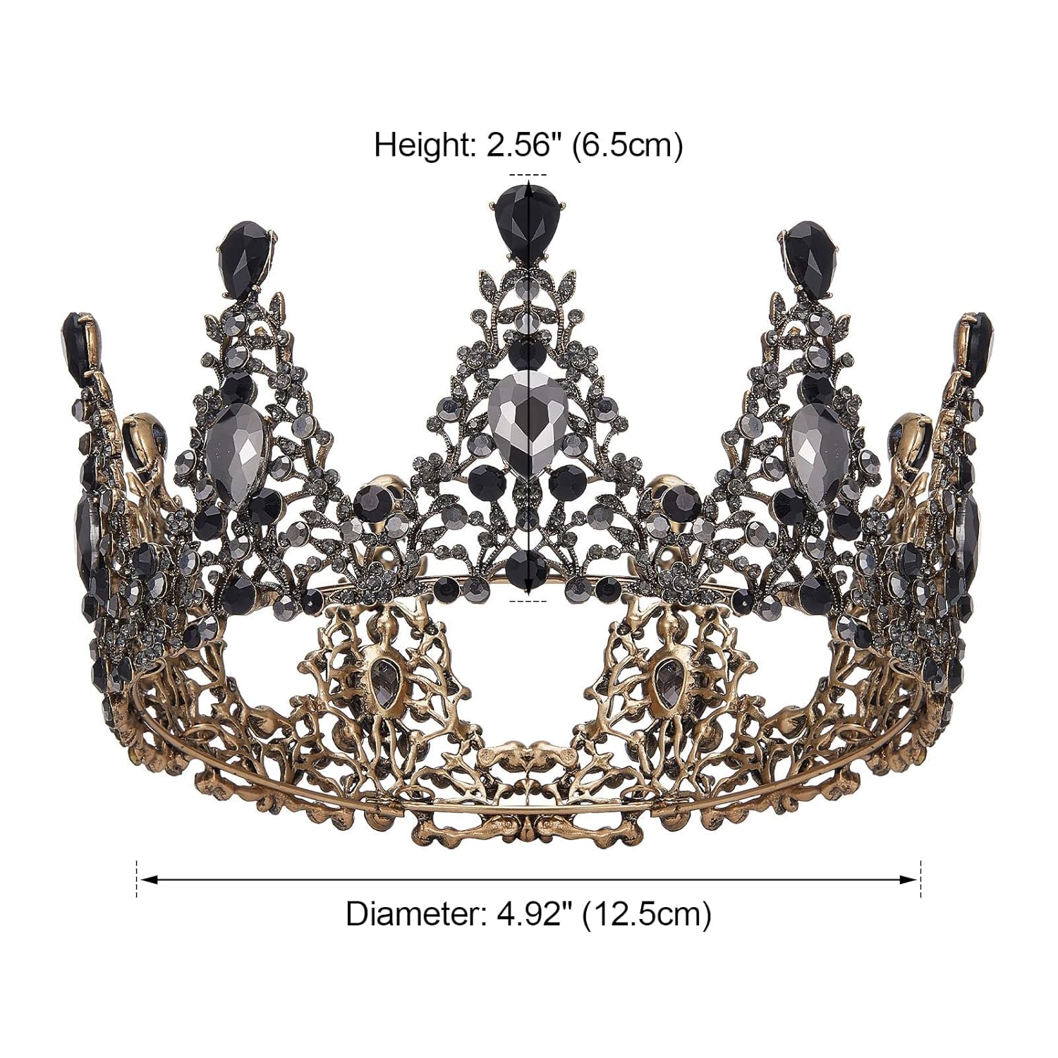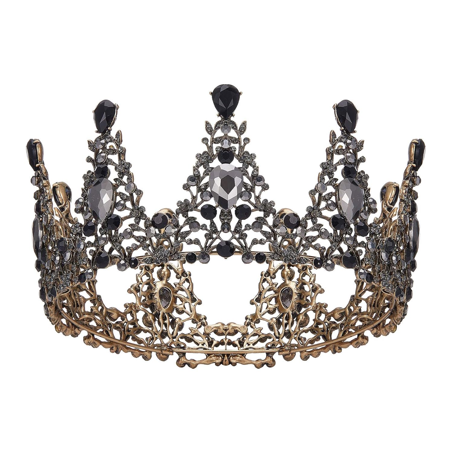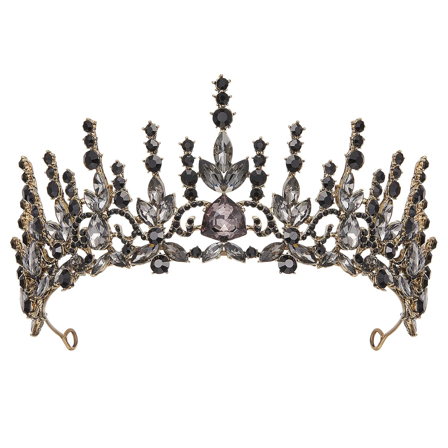 AW BRIDAL Black Baroque Queen Crown for Women, Gothic Crystal Tiara for Halloween Wedding Pageant Quinceanera Birthday Party, Rhinestone Hair Accessories for Bride