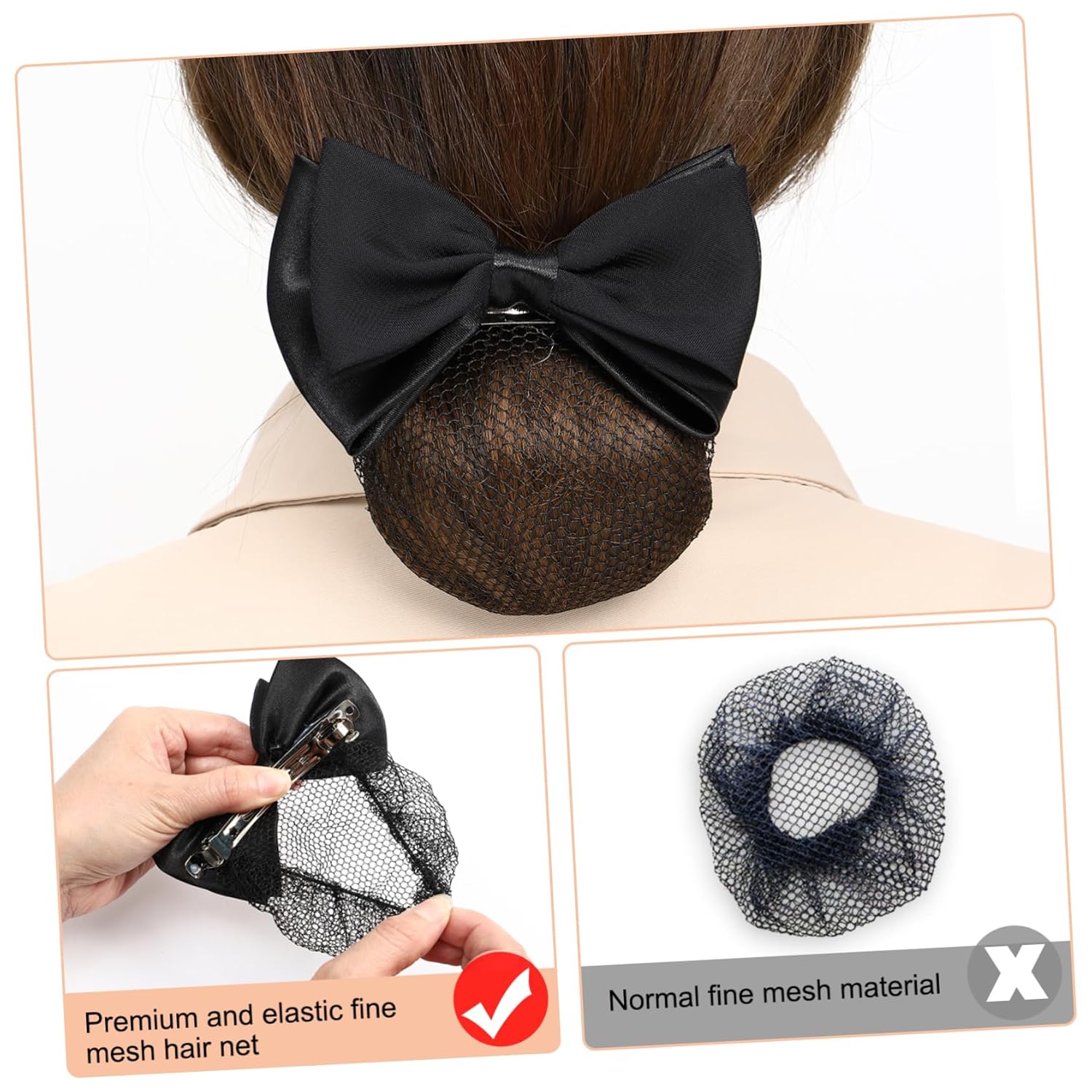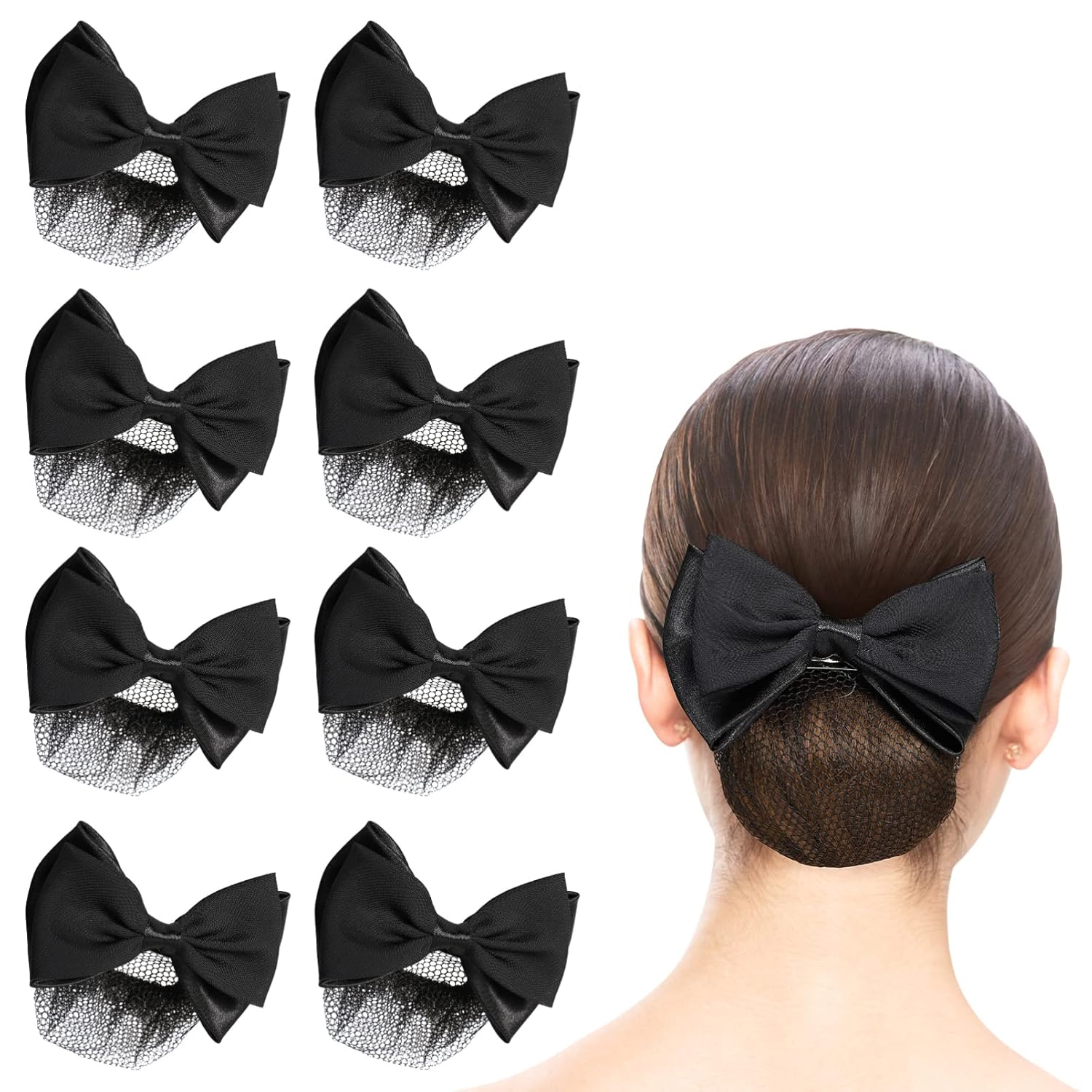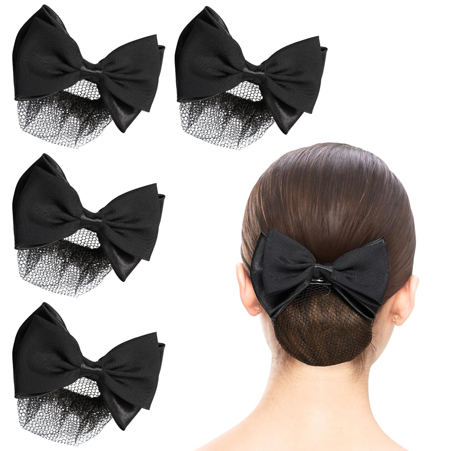 - Women Hair Clip, Bow Hair Snood: Whether you're working in a bank, on a high-speed train, or at a luxury hotel, our hair net and hair clip combo is both practical and stylish. It keeps your hair in place while adding a chic accessory to your overall appearance