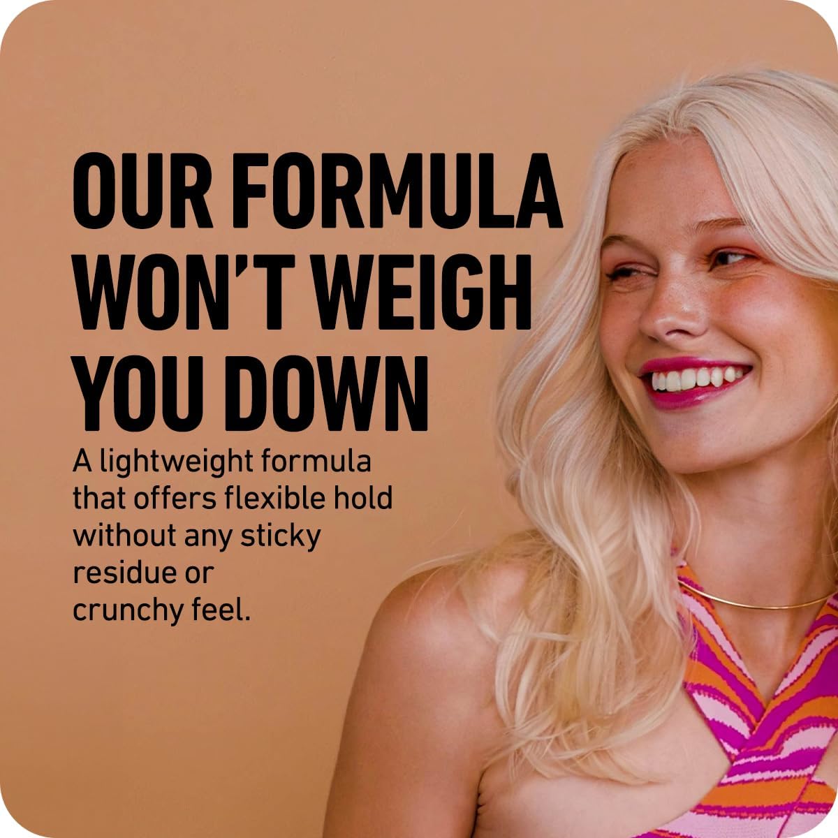 has a lightweight formula that offers flexible hold without any sticky residue or crunchy feel. Expect definition, separation, a boost of body, grip, and crunch-free light hold.