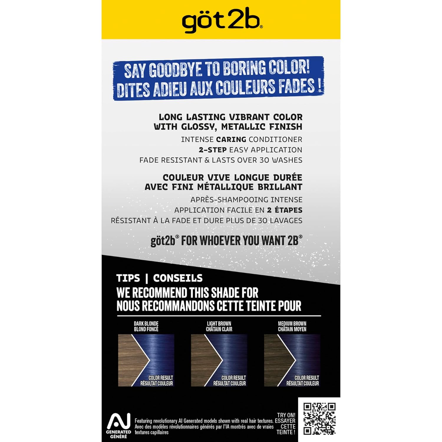 Say goodbye to boring colors! All eyes are on you with Schwarzkopf got2b Metallics permanent color. Boost your hair color with trendy metallic shades. Schwarzkopf got2b Metallic Hair Color offers a multi-dimensional look that delivers unique metallic radiance. Permanent hair color that lasts. Got2b Metallics hair dye works for all hair textures. This permanent hair color can be used on your natural hair, wigs, or extensions to express yourself! The lighter your natural or current hair color, the more metallic the hair shade results. For best results, this hair color is not recommended for all hair shades.