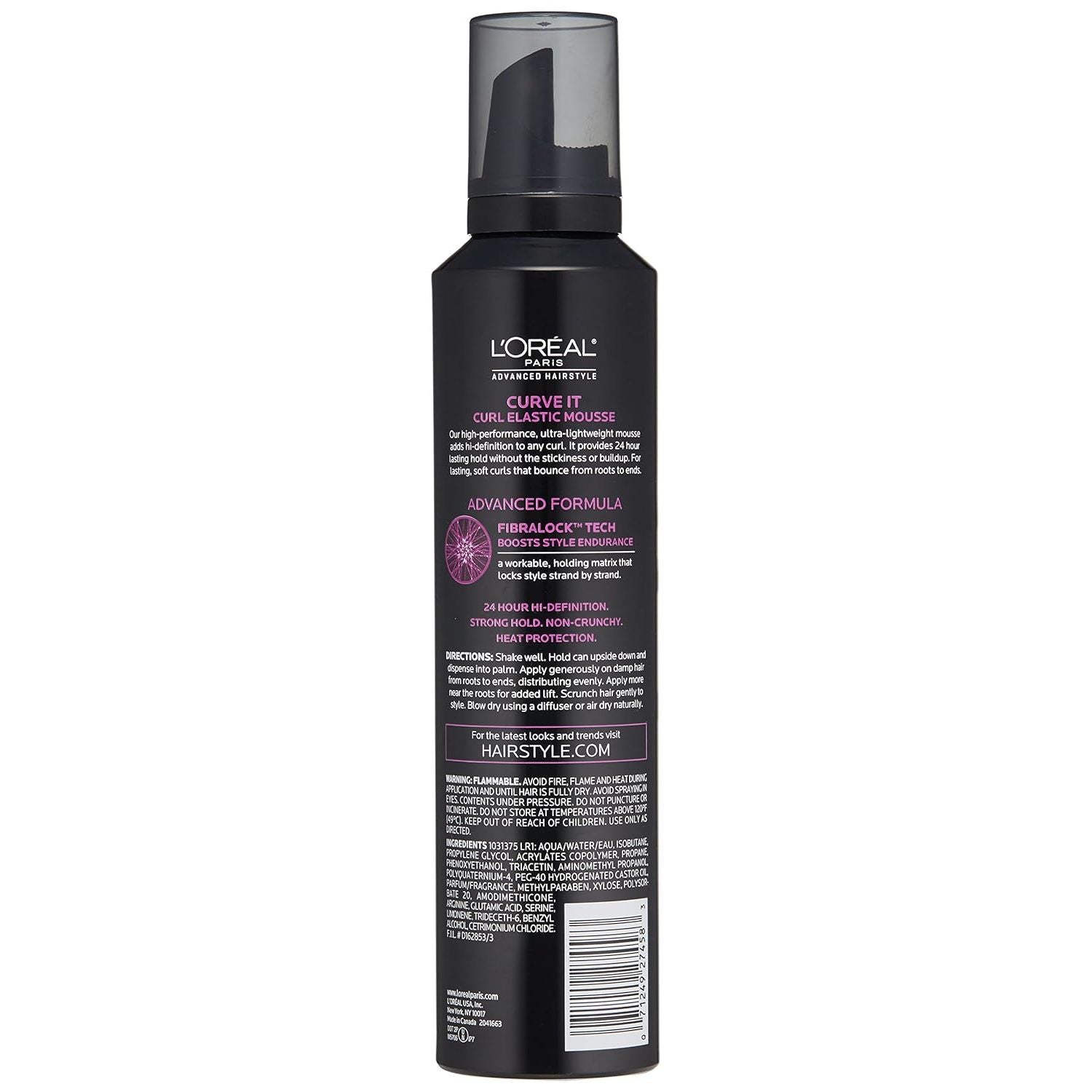 Get lasting, soft curls that bounce from roots to ends with L'Oreal Paris AHS CURVE IT Curl Elastic Mousse. This high-performance, lightweight mousse adds hi-definition to curly hair. It provides shaping and 24-hour lasting hold without the stickiness or buildup and with extra strong hold. To complete your curly hairstyle, explore other L'Oreal curly hair products like the AHS Curve It Curl Taming Gel-Cream. • 24HR Hi-Definition Curls • Non-Crunchy, Strong Hold • For Lasting, Soft Curls that Bounce • Perfect for Curly Hairstyles Shake well. Hold can upside down and dispense into palm. Apply generously on damp hair from roots to ends, distributing evenly. Apply more near the roots for added lift. Scrunch hair gently to CURVE IT curl by curl. Blow dry using a diffuser or air dry naturally. Flammable. Avoid fire, flame and heat during application and until hair is fully dry. Avoid spraying in eyes. Contents under pressure. Do not puncture or incinerate. Do not store at temperatures above 120ºF (49ºC). Keep out of reach of children. Use only as directed. Intentional misuse by deliberately concentrating and inhaling contents can be harmful or fatal.