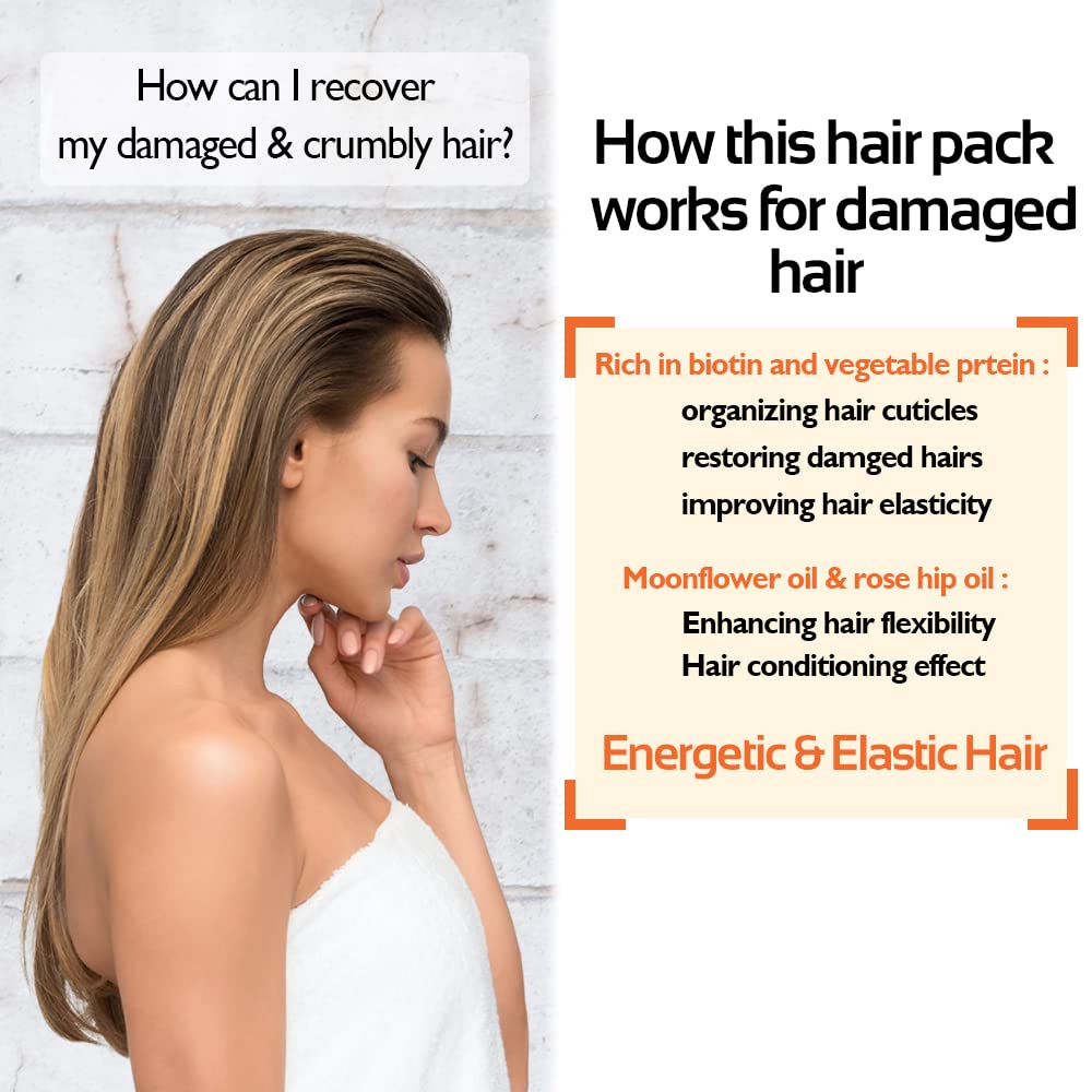 - Silky and shiny hair with argan oil: It contains france argan oil 470mg. It provides rich nutirition such as vitamin A, vitamin E,omega 6 fatty acid, and linolenic acid to our rough skin to be elastic and moist.This nourishing hair pack provides intensive care to severely damaged hair. The ingredients of argan oil, rosehip oil and evening primrose oil make the hair texture look healthy and radiant by providing it with moisture and nourishment.