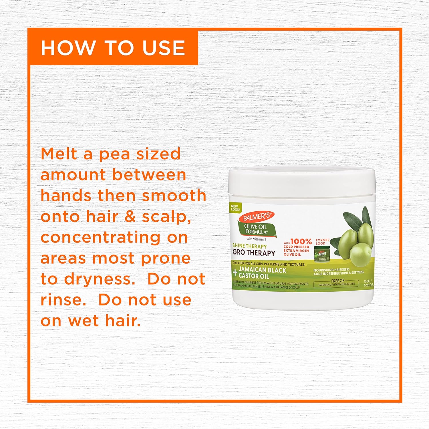 Palmer's Olive Oil Formula Gro Therapy, a therapeutic balm formulated with Extra Virgin Olive Oil and essential vitamins, restores softness and manageability and leaves hair silky with a long-lasting sheen. Formulated with Botanical Scalp Complex along with Keratin and Soy Protein to strengthen hair's structure. No sulfates, no parabens, no phthalates, no gluten.