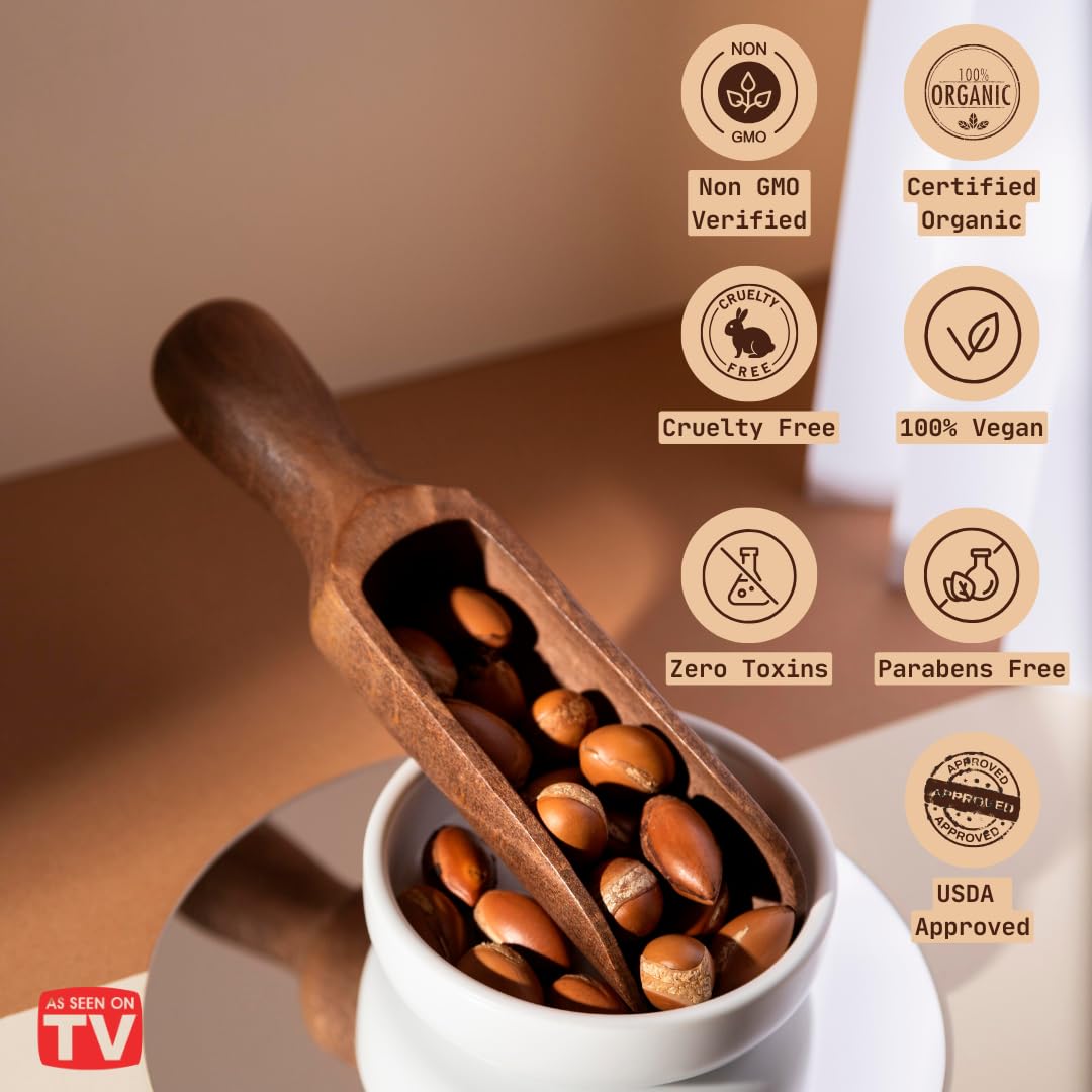 - USDA CERTIFIED ORGANIC ARGAN OIL: VoilaVe argan oil for women is sourced from the nutrients-rich argan trees from Morocco and is USDA certified. USDA certified ensures the integrity of our organic argan oil. In other words, it’s really 100% safe and organic.