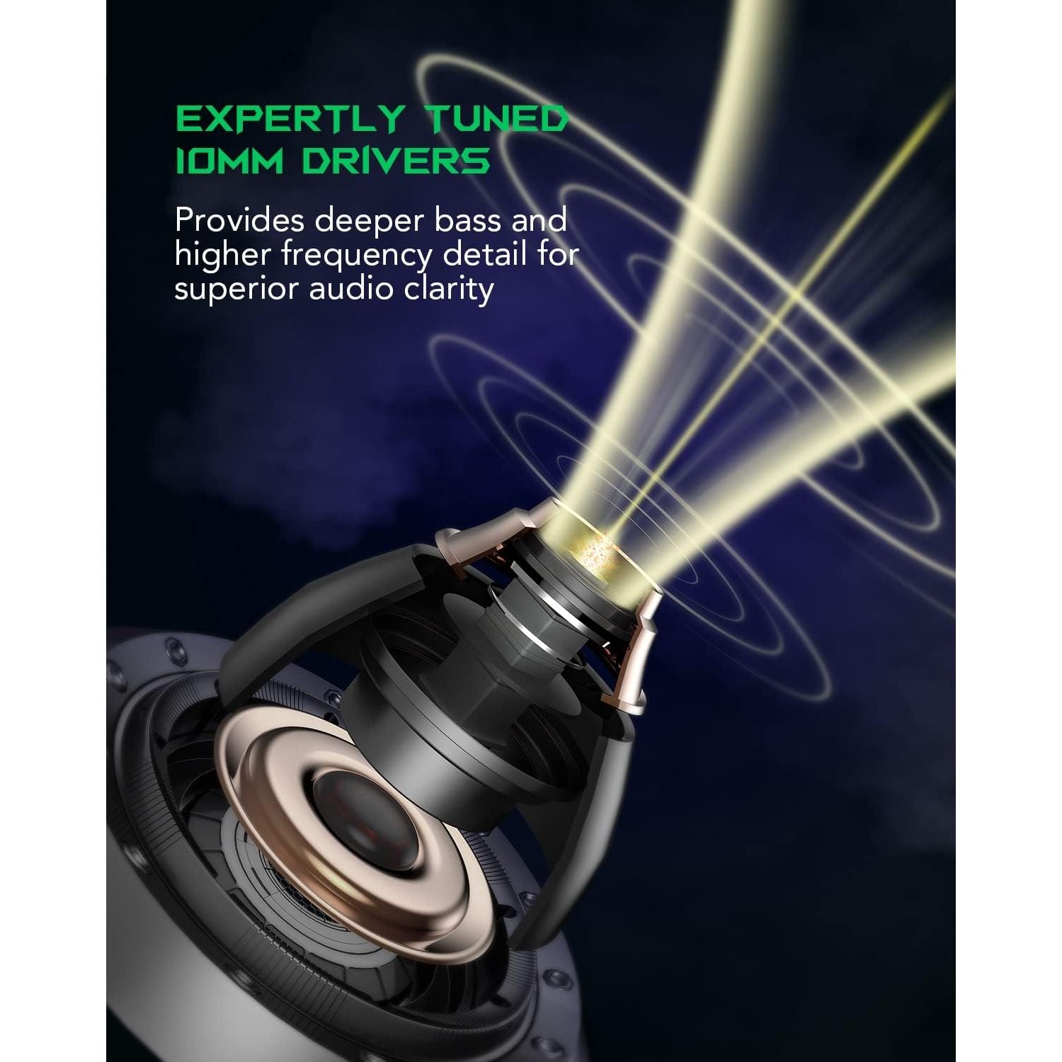 Dynamic Lighting Effect - LED indicators in both earbuds and charging case bring you a fascinating gaming atmosphere and show the remaining battery level