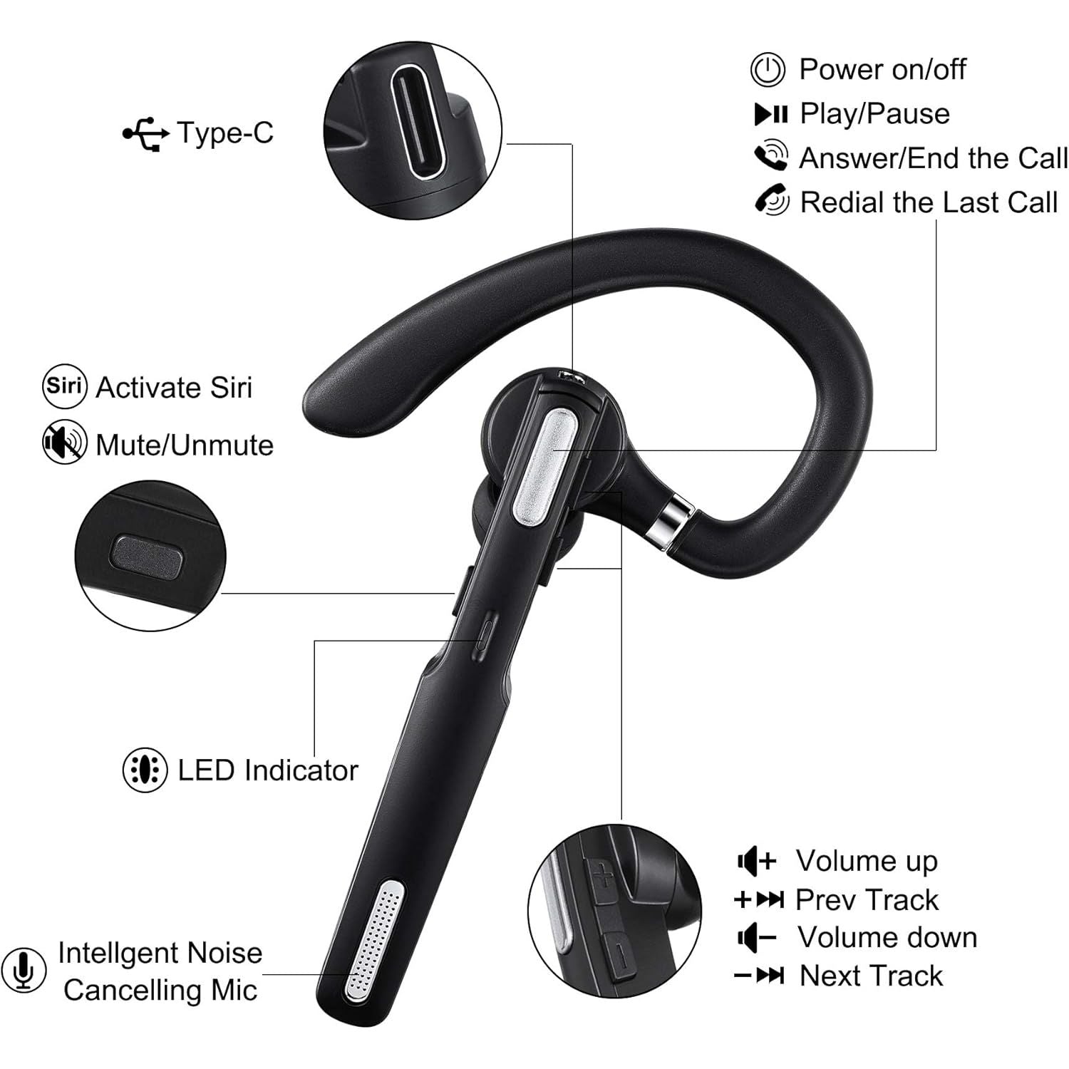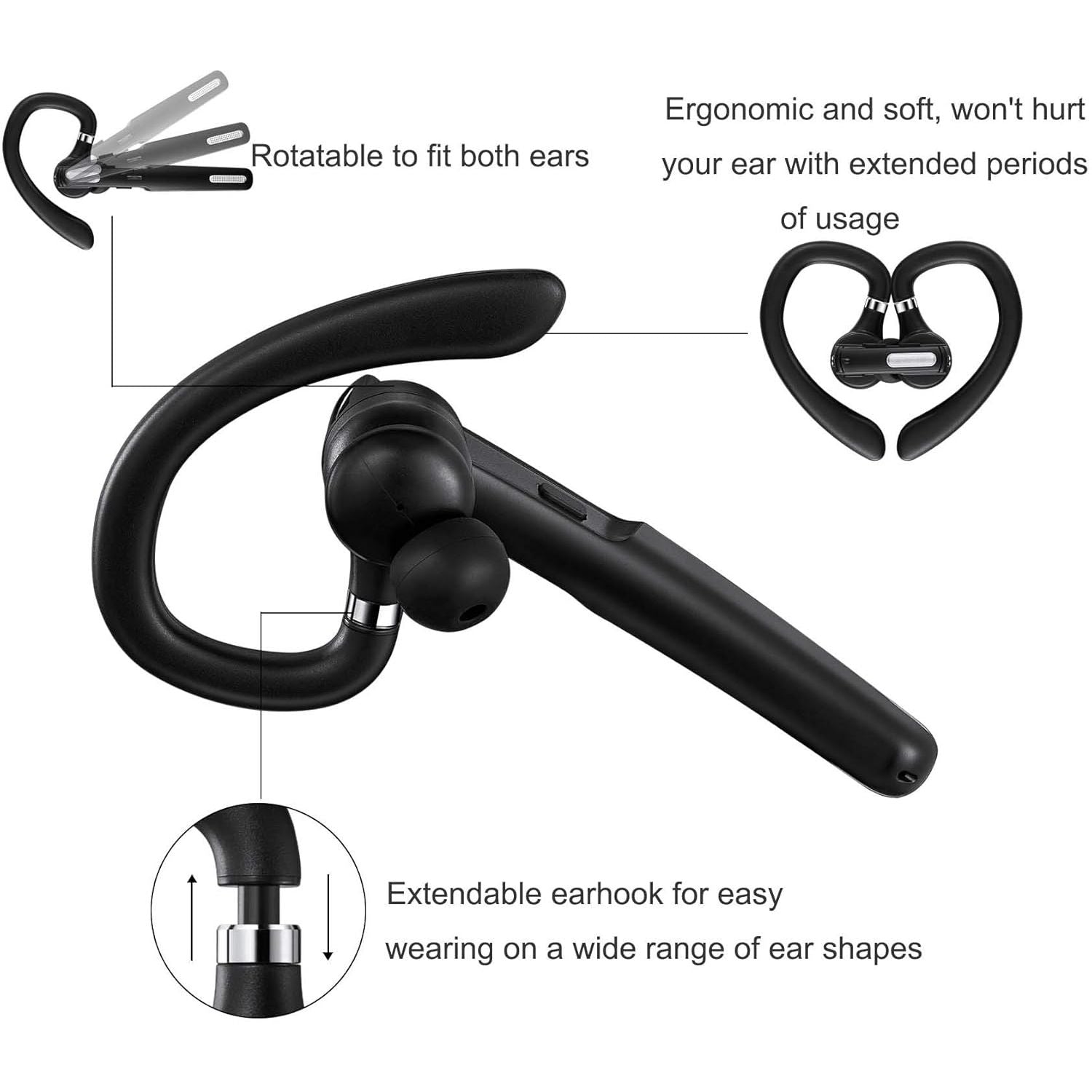 - Bluetooth Headset, Wireless Bluetooth Earpiece V5.0 8-10 Hours Talktime Stereo Noise Cancelling Mic, Compatible for iPhone Android Cell Phones Driving/Business/Office (Black)