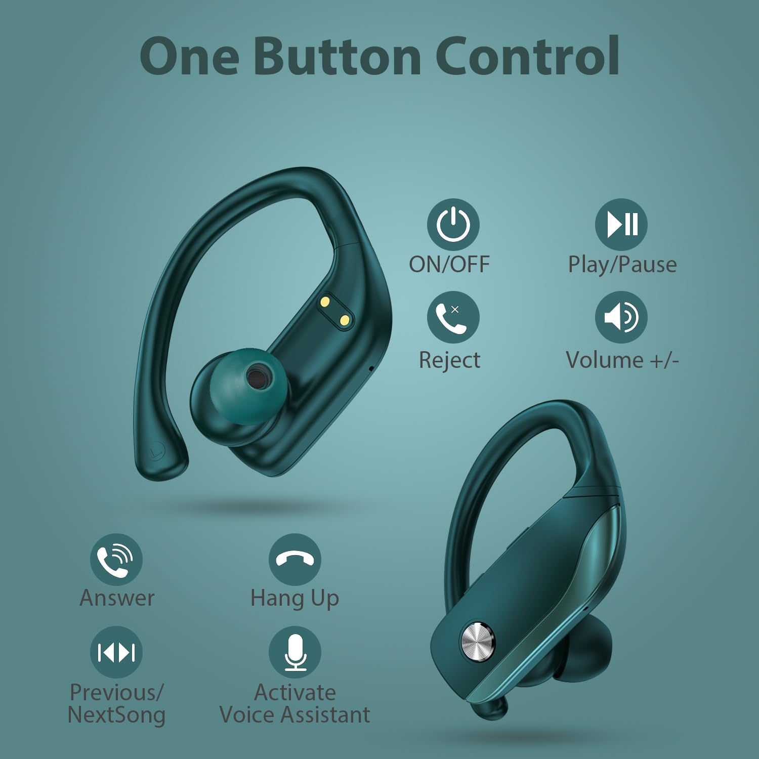 - bmanl Wireless Earbuds Bluetooth Headphones 48hrs Play Back Sport Earphones with LED Display Over-Ear Buds with Earhooks Built-in Mic Headset for Workout Green