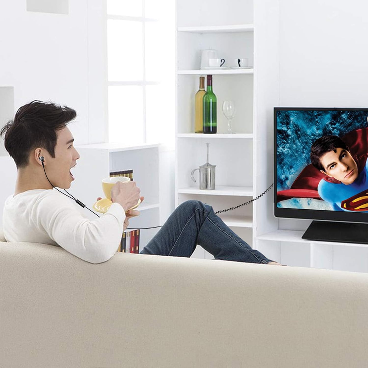 - Extra Long Earbuds for TV & PC, with 12FT Spring Coiled Extension Cable, Volume Control & Mic, in-Ear Wired Headphones for 3.5mm Audio Output Devices, ChanGeek CGS06