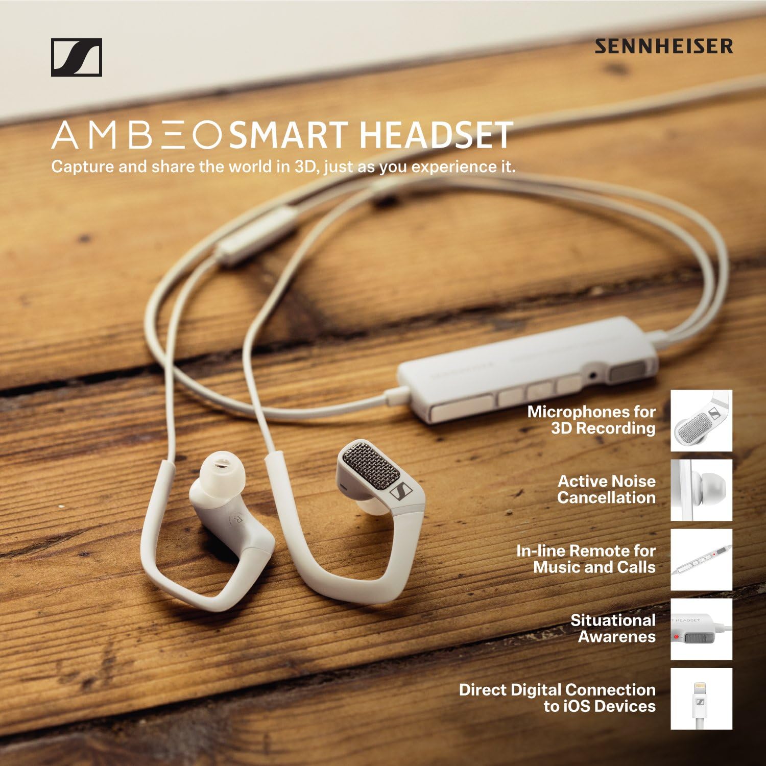 - Sennheiser AMBEO Smart Headset (iOS) – Active Noise Cancellation, Transparent Hearing and 3D Sound Recording