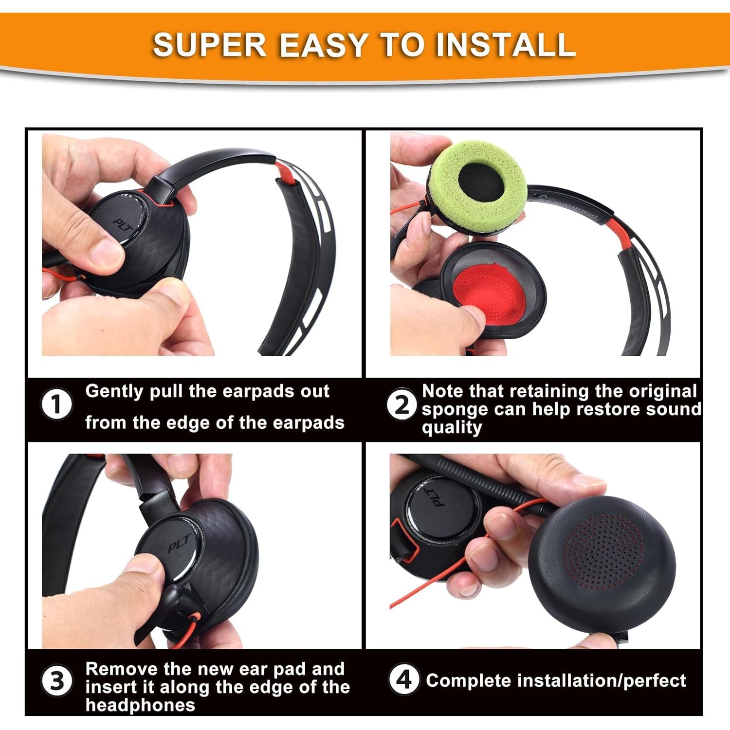 - 【EASY INSTALLING】First, remove the original ear pad (removal method: slowly peel off the ear pad along the edge of the earpiece)