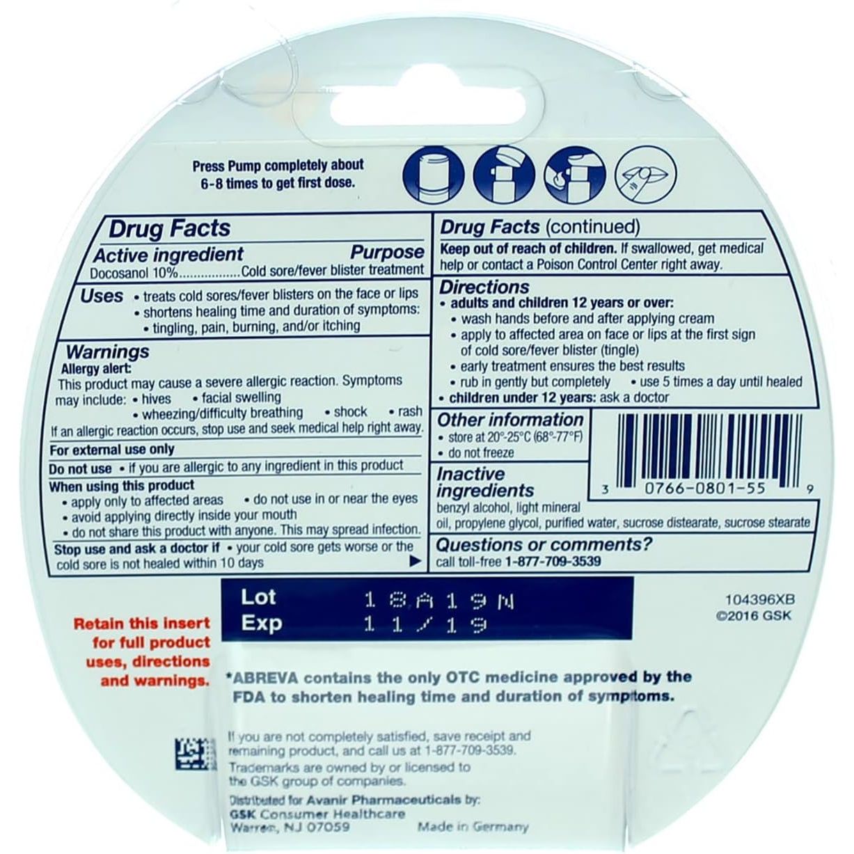 Abreva 2grm Pump Size 1ct Abreva Cold Sore Treatment