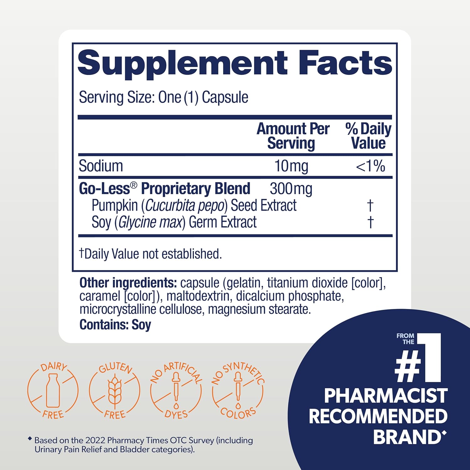 - GO LESS This safe, drug-free supplement contains a naturally sourced blend that supports bladder strength and helps reduce the urge to go, day and night. Healthy bladder control helps manage those frustrating nighttime visits to the bathroom.