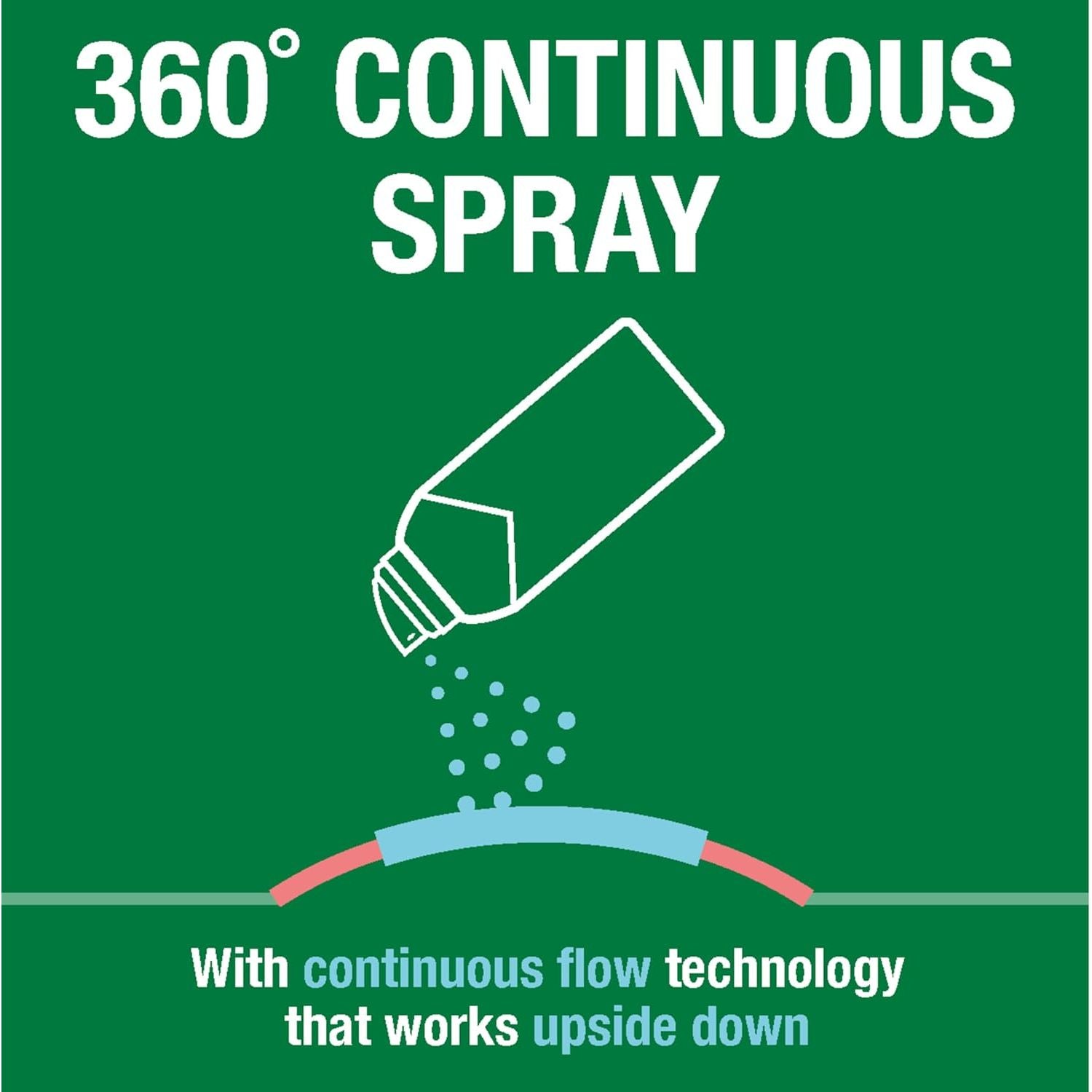 - The 4 fl oz 360° spray bottle features the best spray technology available with continuous flow even when upside down