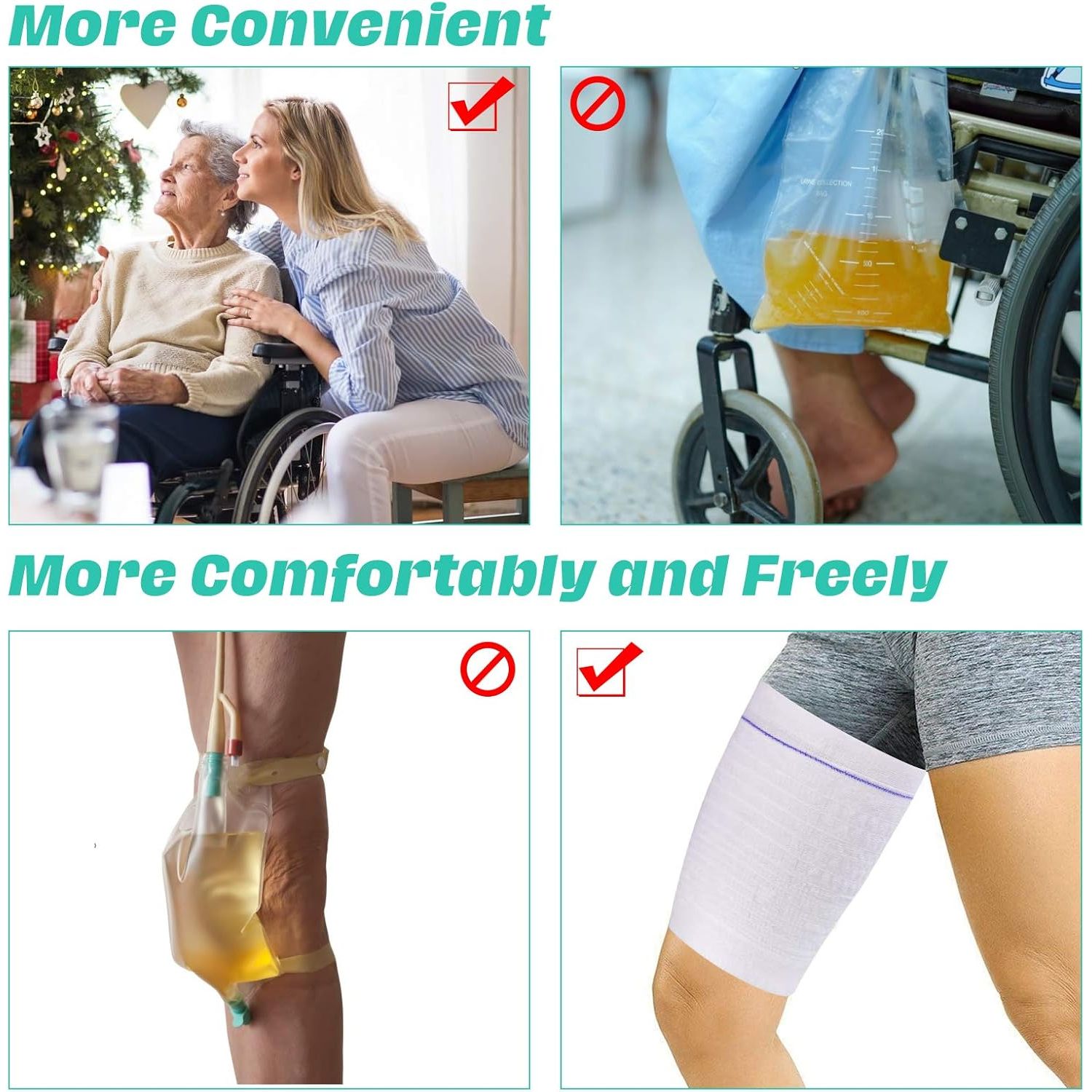 - Urine Bags for Legs can ensure uniform distribution of urine, and you can wear them directly on your thighs or calves without adhesives or straps.Urine catheter leg bag holder prevents contact between the leg bag and the skin, reducing infection risk!