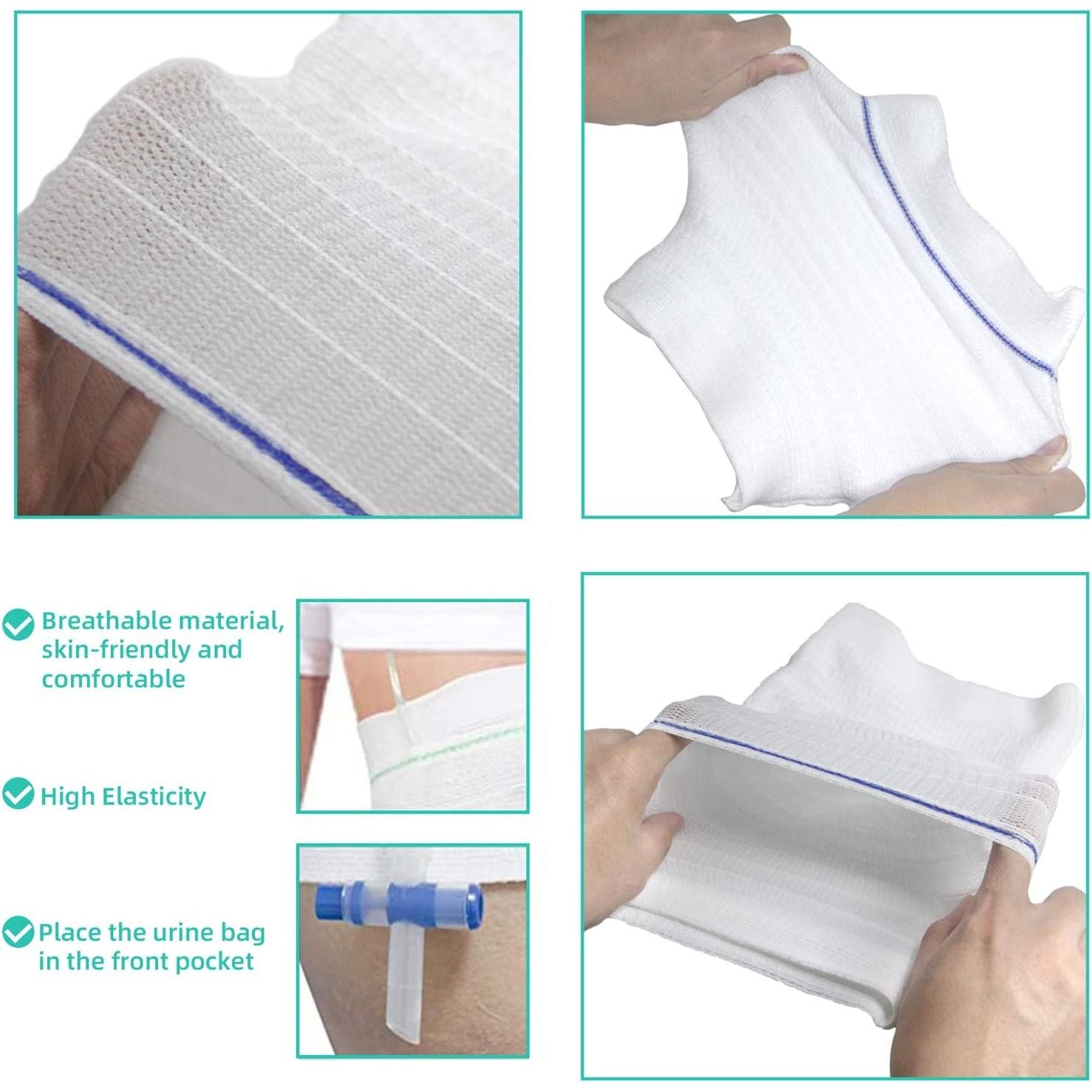 - Urine Bag Leg Sleeve-Made of Polyester + Elastane which is soft comfortable and breathable.washable and latex-free, it is elastic and does not bring any pressure to the thigh or calf.
