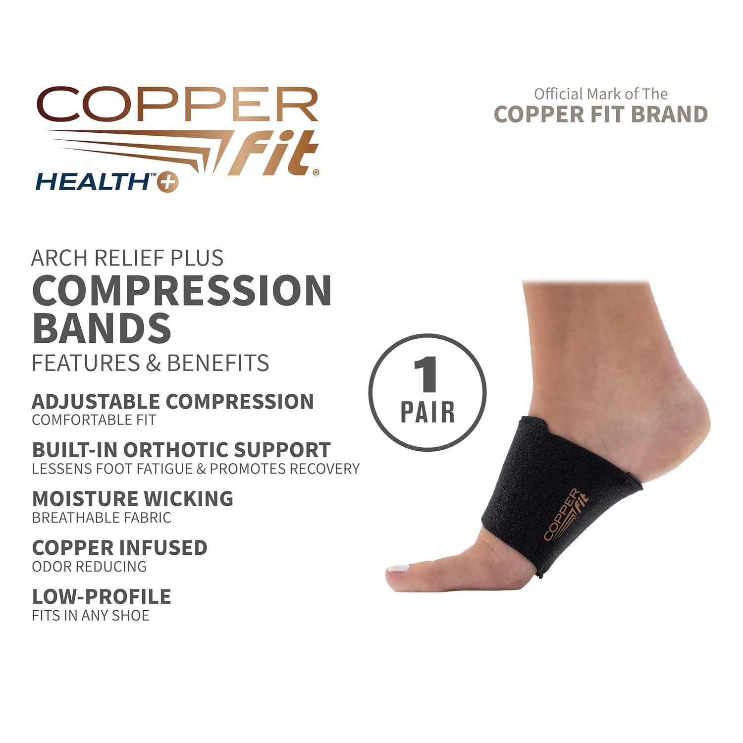 Each package contains 2 Copper Fit Health Arch Relief Plus Wraps .Copper infused to reduce odorHelps reduce foot discomfort associated with fallen arches, flat feet, and plantar fasciitisWear with or without shoes
