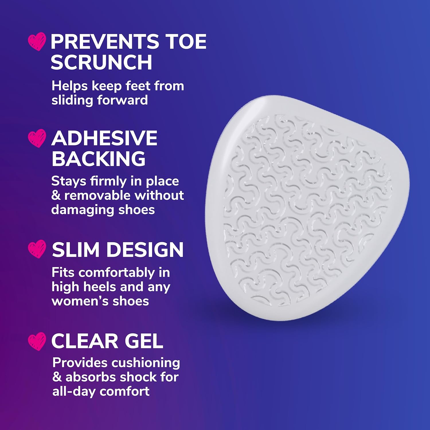 - SECURE NO-SLIDE FIT: Designed to stay firmly in place, these pads prevent your feet from sliding forward, with padded cushioning that acts as a stopper, enhancing shoe fit and comfort.