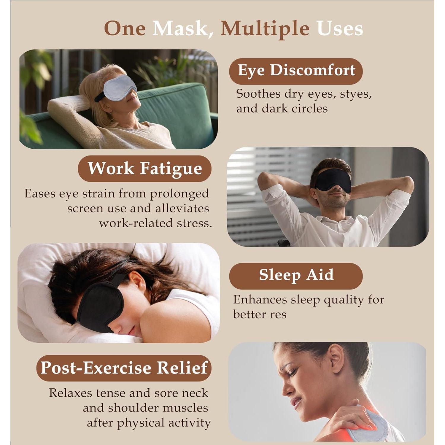 - Multi-Purpose Eye Relief for All: Experience relief from dry eyes, fatigue, dark circles, and stress with this multi-purpose eye mask. Perfect for office workers, seniors, and anyone facing screen strain. It also helps alleviate neck, shoulder, and muscle tension, offering complete relaxation after long hours at work or home