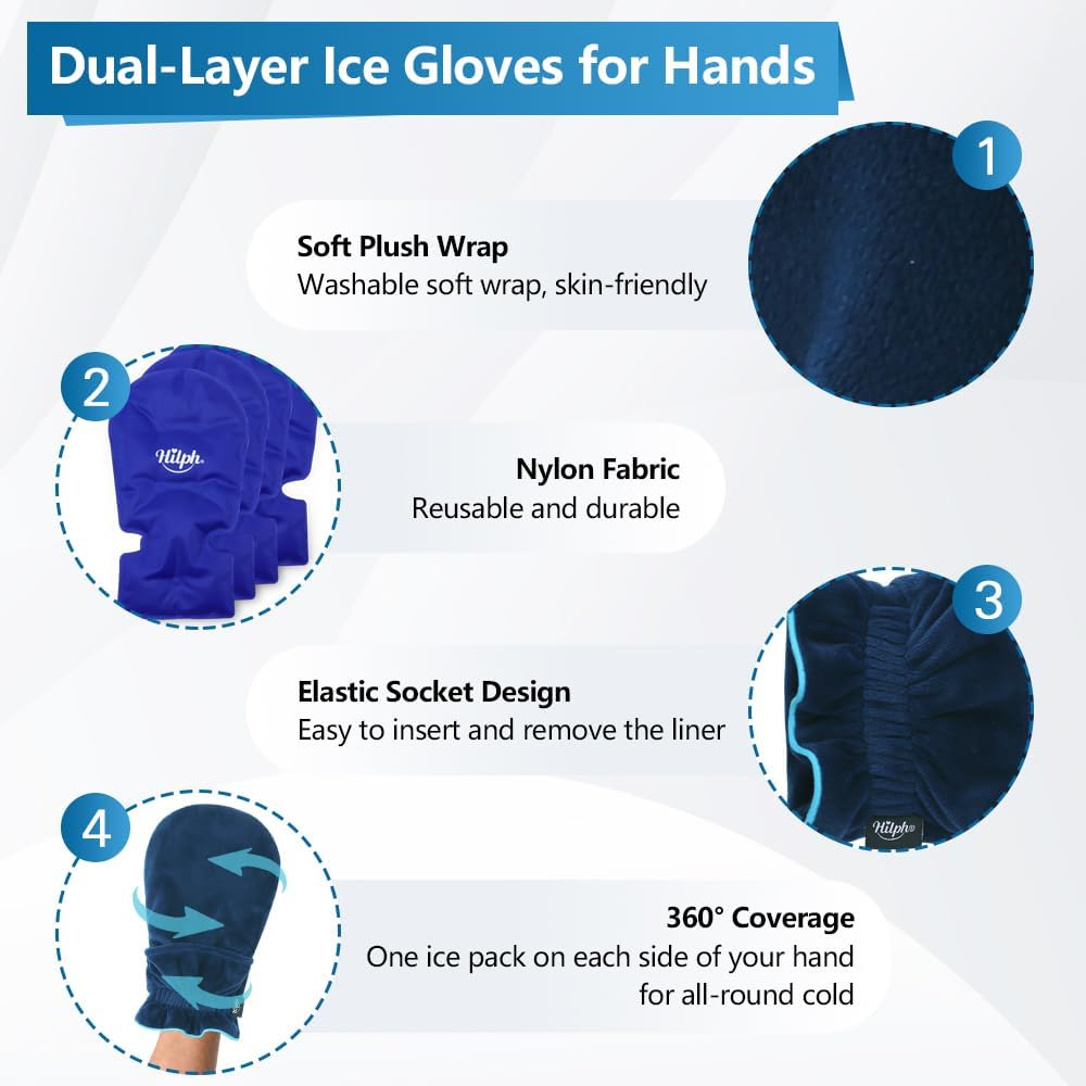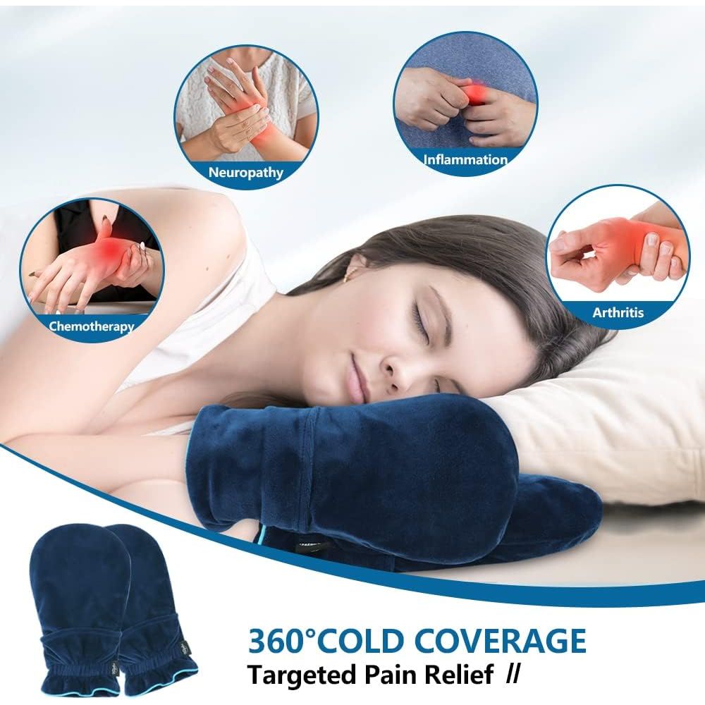 - Hilph Hand Ice Pack Gloves for Chemotherapy, Hot and Cold Therapy Cooling Gloves with 4 Gel Ice Packs for Full Hand & Wrist Pain Relief, Aching Hands, Neuropathy, Swelling, Working Hands (1 Pair)