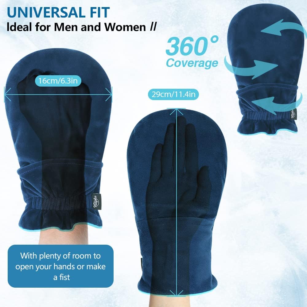 - [Universal Fit & Easy to Clean] - Removable filler ice packs on each side can be removed easily, so the soft gloves is easy to clean. Cooling gloves are designed to fit the average person: with a depth of 6.3 inches, have enough space for hands, elasticated cuffs prevent slide and can secure on hand.