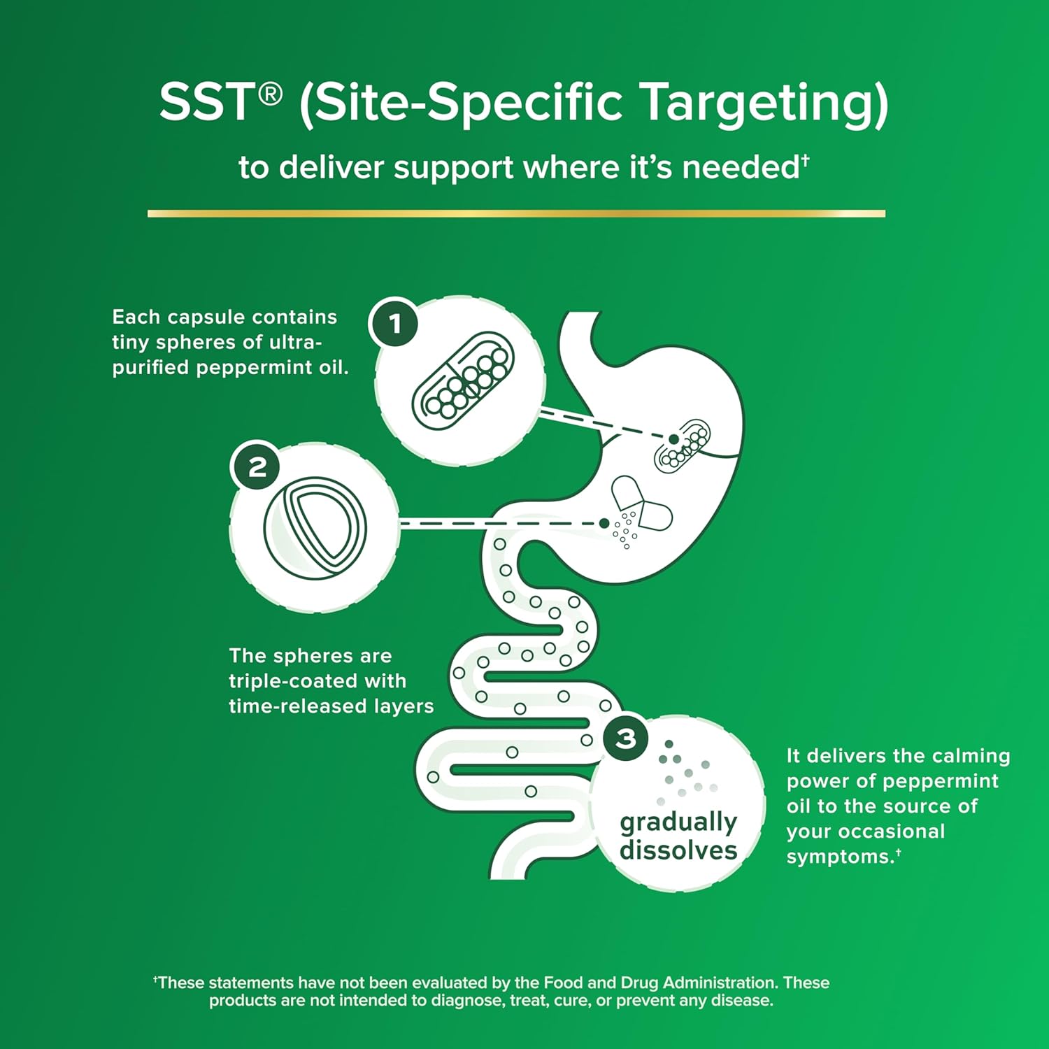 - SUPPORT WHERE YOU NEED IT (1): Patented Site-Specific Targeting (SST) technology delivers Ultrapurified Peppermint Oil where it is needed in the gut (1)