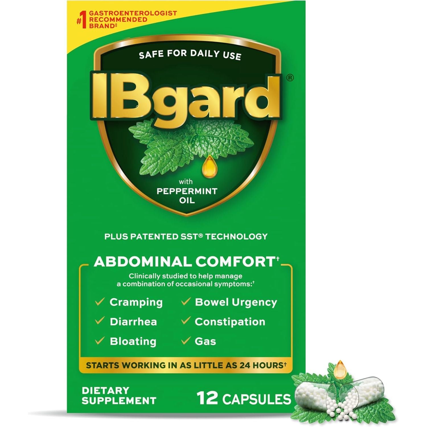 - DAILY GUT-HEALTH GARD (1): IBgard can be taken daily and is clinically shown to help manage a combination of occasional symptoms: cramping, bowel urgency, diarrhea, constipation, bloating, and gas (1)