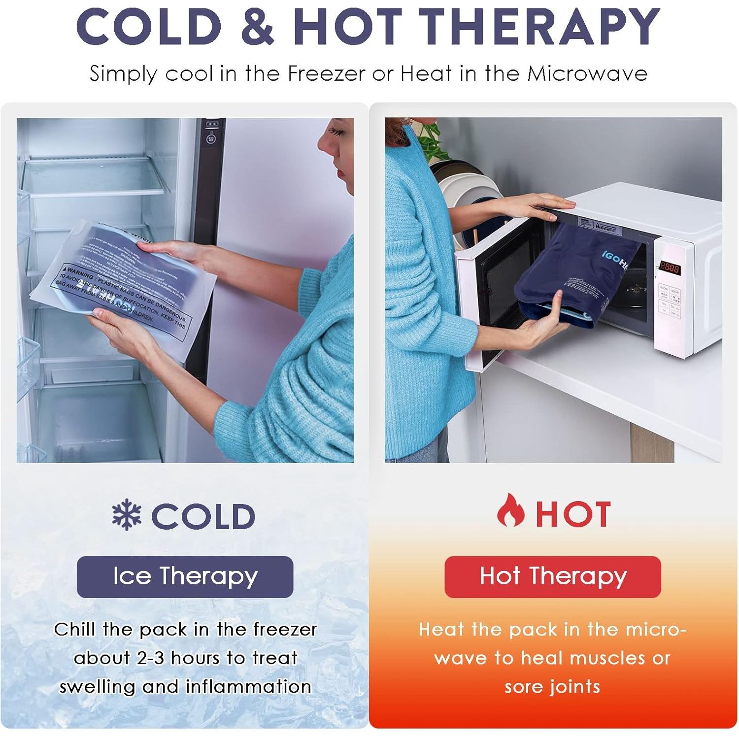 - Hot & Cold Therapy: Reusable cold and hot pack provide targeted hot or cold therapy for you. Just put it into the microwave for heat therapy or put into the freezer for a cold compress, a perfect ice pack for knee, shoulder, back, head, belly, hips, knees, thighs, shins, arm or leg pain, almost suitable for most parts of body. Please follow the instructions for specific use.