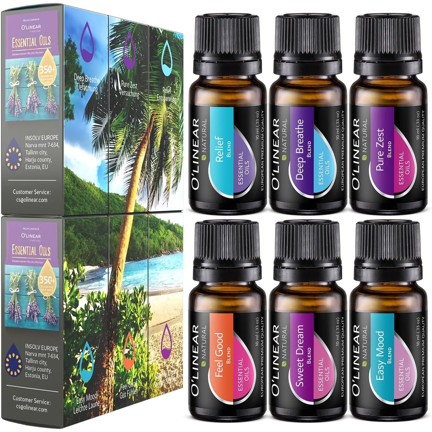 - O'linear Essential Oils 6 Blends Set - Perfect for Humidifiers and Diffusers, Aromatherapy Diffuser Oils Scents, Essential Oil Kit for Home Use, Essential Oil Pack with Various Scents