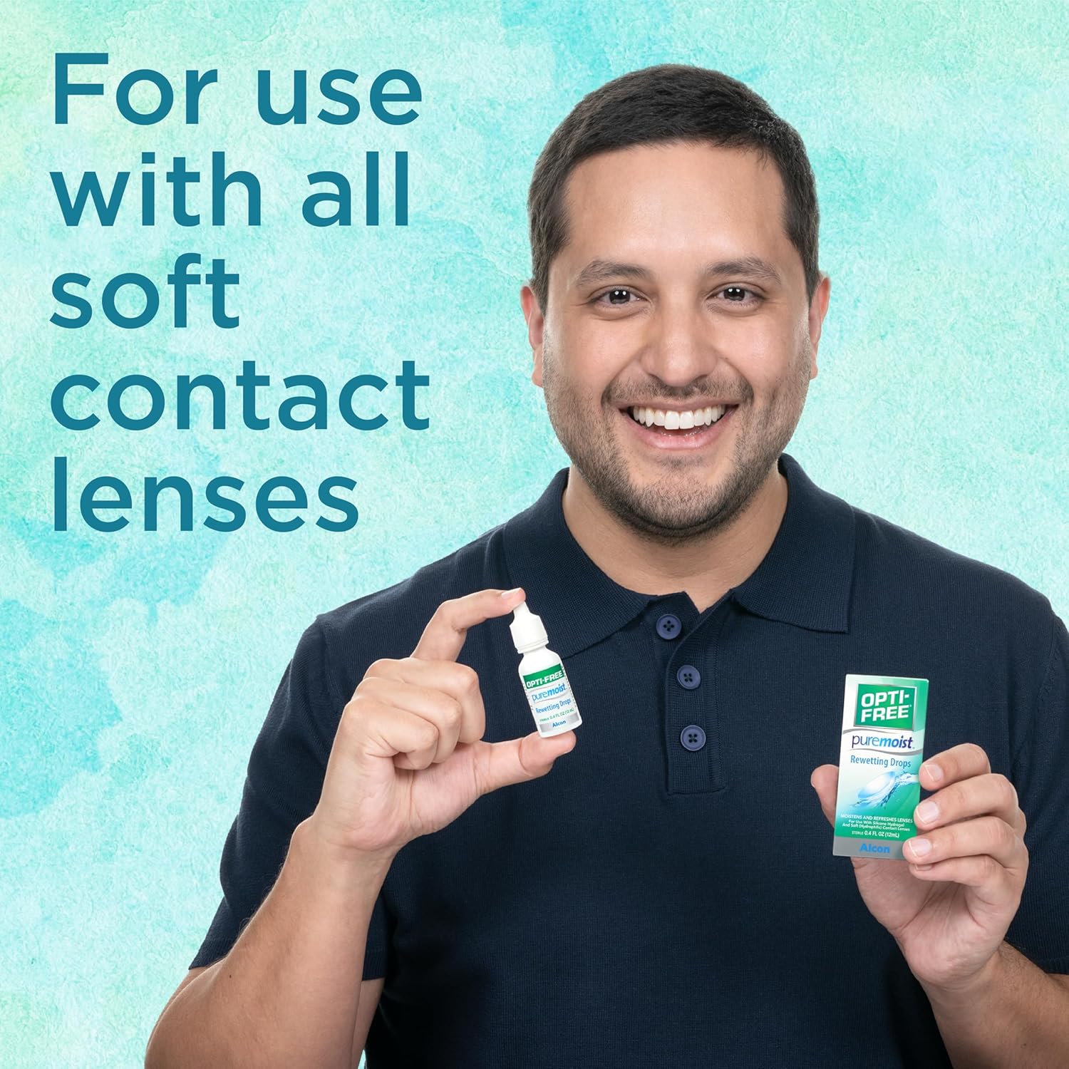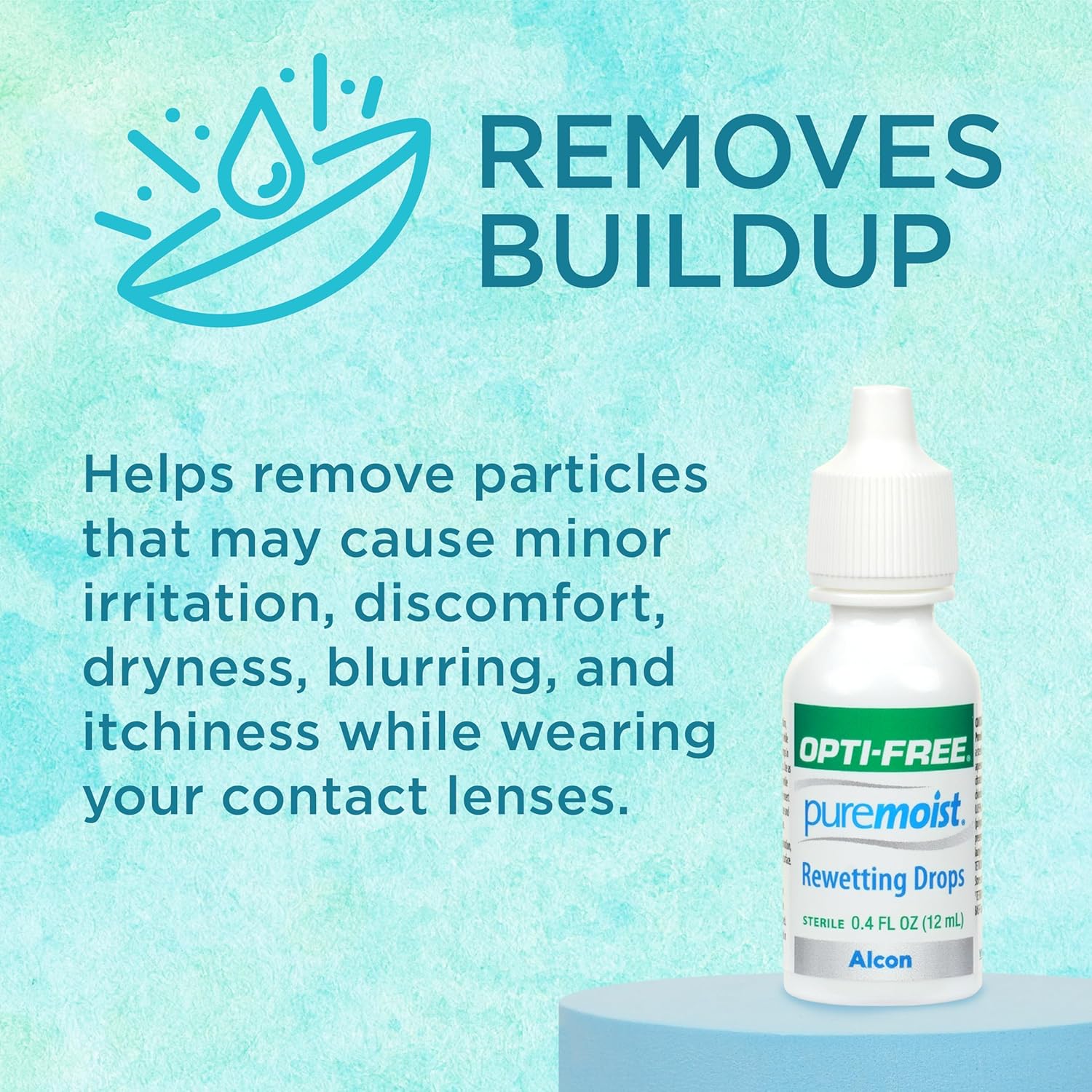 - Opti-Free Puremoist Rewetting Drops give you a refreshing burst of moisture for added comfort when wearing contact lenses