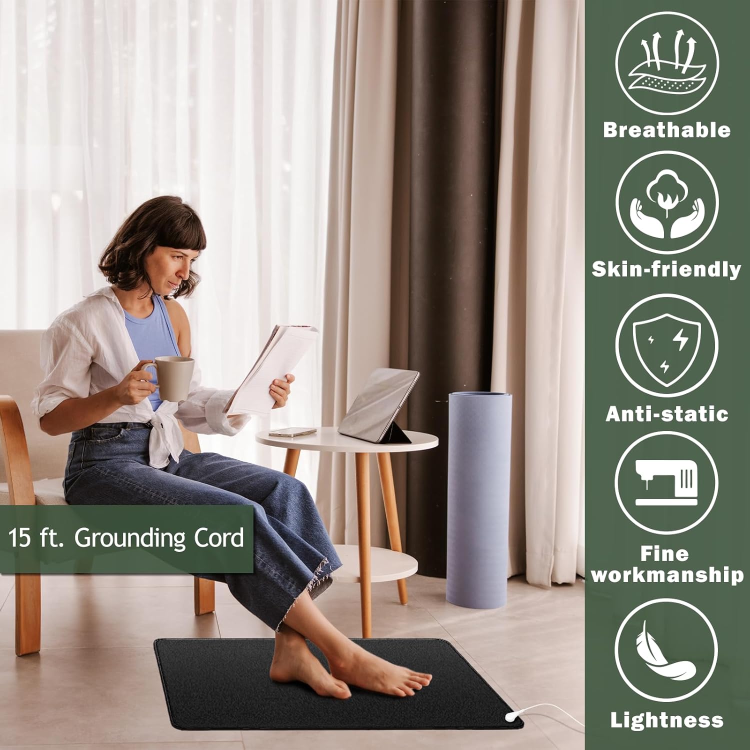 - Reconnect to The Earth EMF Recovery Mat, 35.4x23.6 inches, Universal Grounding Sleep & Yoga Mat, Improves Energy, Sleep Assist, Helps with Anxiety - BLACK