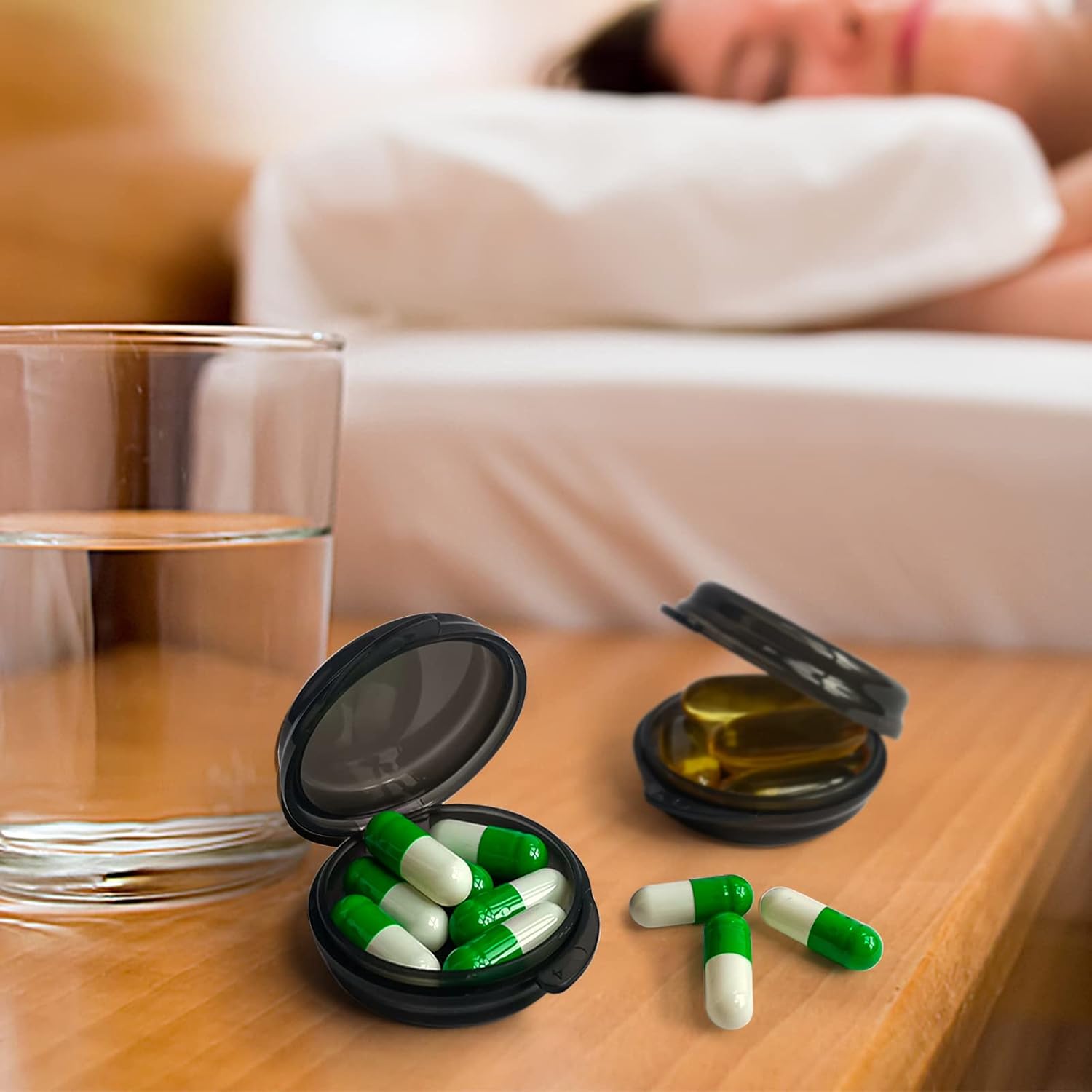 - LOVELY APPEARANCE: The cute pill box is round, and there are currently 6 colors, including blue, green, black, purple, red and pink; Simple and lovely design can satisfy most people's tastes.