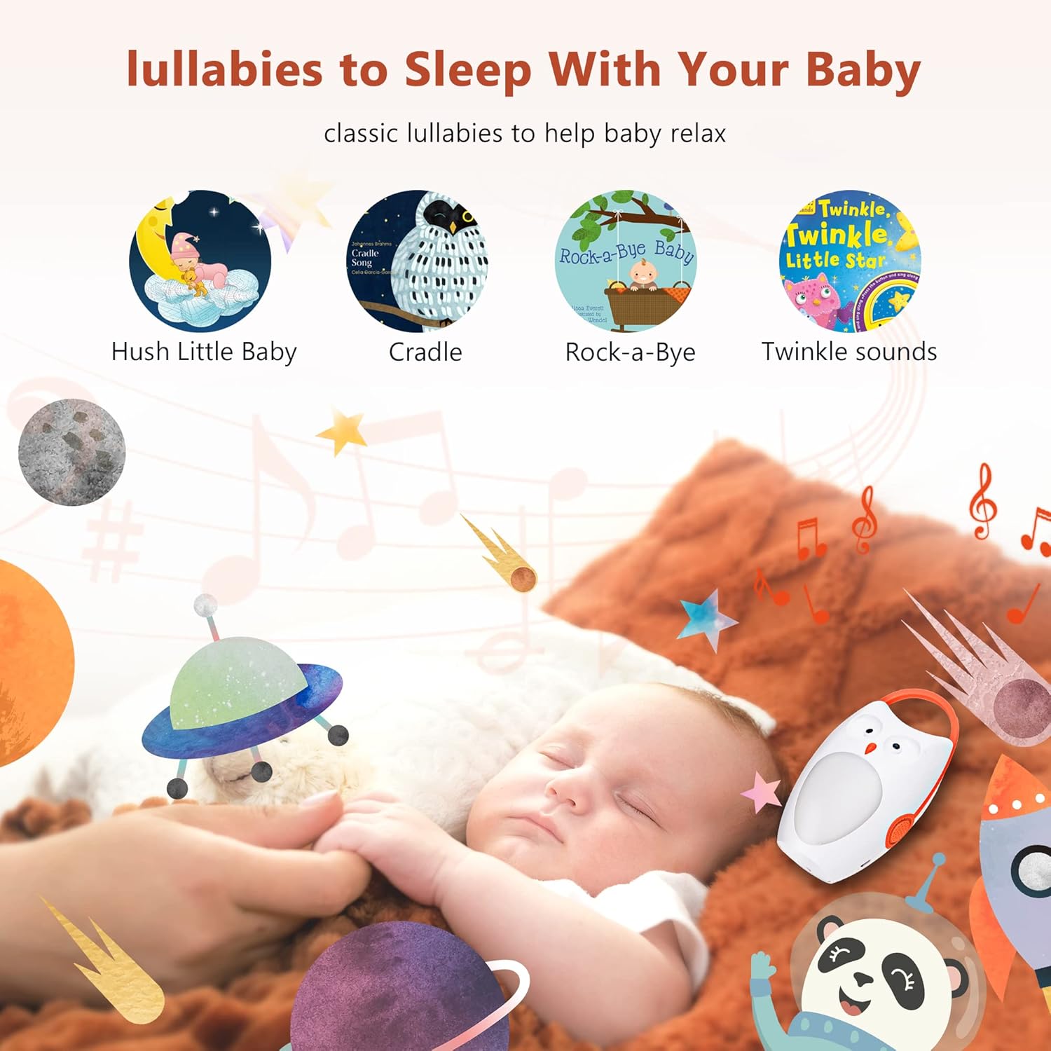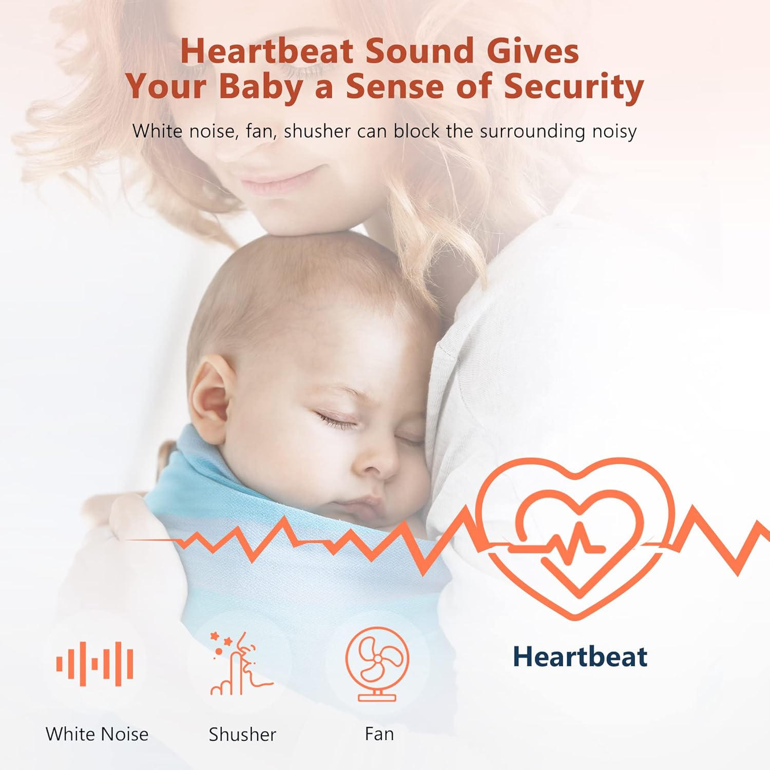 - 【8 Soothing Sounds Noise Machine】Built-in the heartbeat, shusher, white noise, Fan, Hush Little Baby, Cradle, Rock-a-Bye, and Twinkle sounds, which will effectively help calm your baby. The sound machine is great for baby naps and bedtimes.
