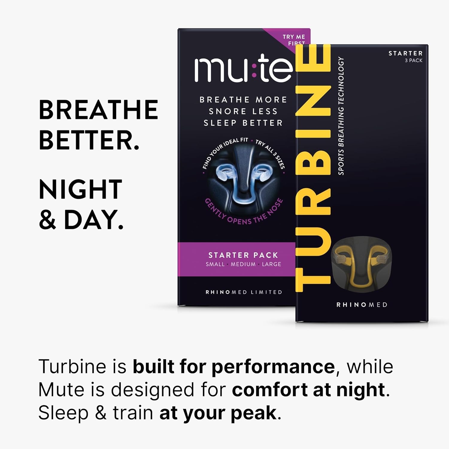 Turbine is designed to be effective and stay in place, making it a firmer Nasal Dilator than our other product Mute. That said, both can be comfortably worn for hours at a time. So whether your workout is short or a marathon, we've got you covered.