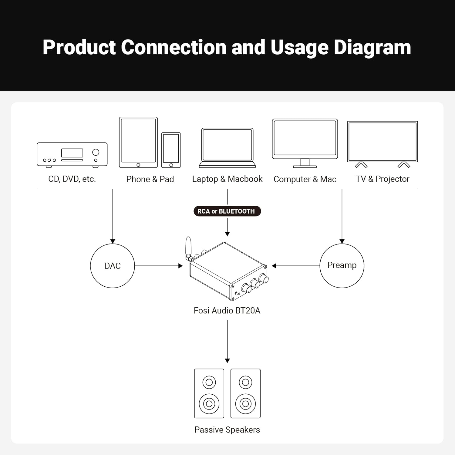 - Fosi Audio BT20A Bluetooth Stereo Amplifier, 2 Channel Home Audio Component Amplifiers for Passive Speakers, Mini Class D Amp Receiver 200W for Indoor/Outdoor/Garage/Ceiling/Bookshelf Speaker