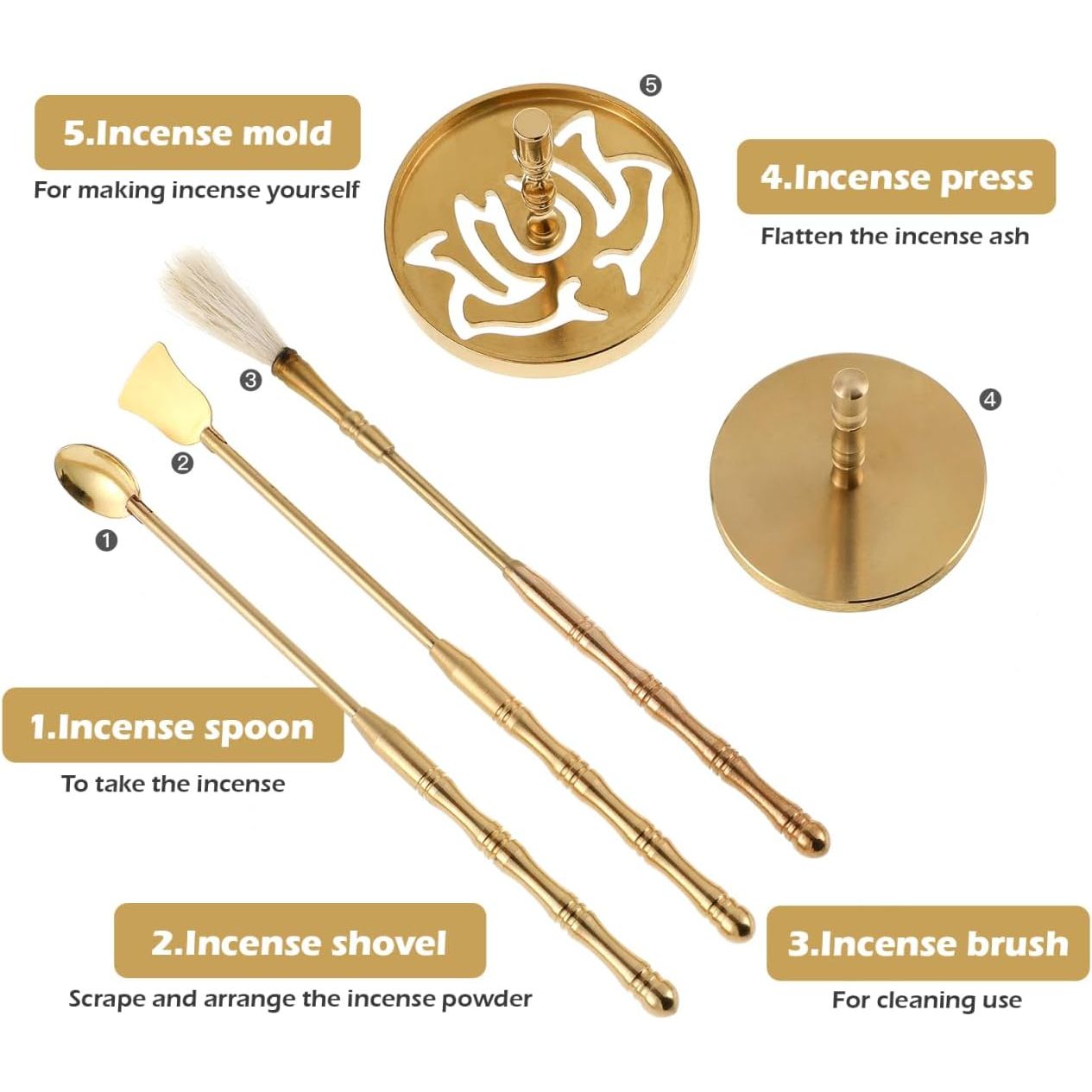 - DOITOOL 5 Pcs Incense Making Kit Chinese Incense Burner Mold Premium Accessories for Aromatherapy Yoga Meditation Relaxation-Golden