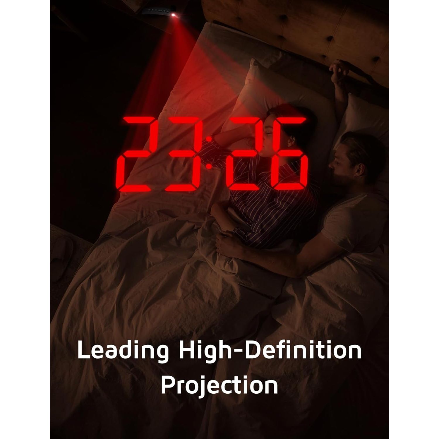 - GOLOZA Projection Alarm Clock, Digital Clock with Modern Curved Design 180° Rotatable Projector, 3-Level Brightness Dimmer, Clear Red LED Display, Progressive Volume, 9mins Snooze,12/24H, for Bedroom