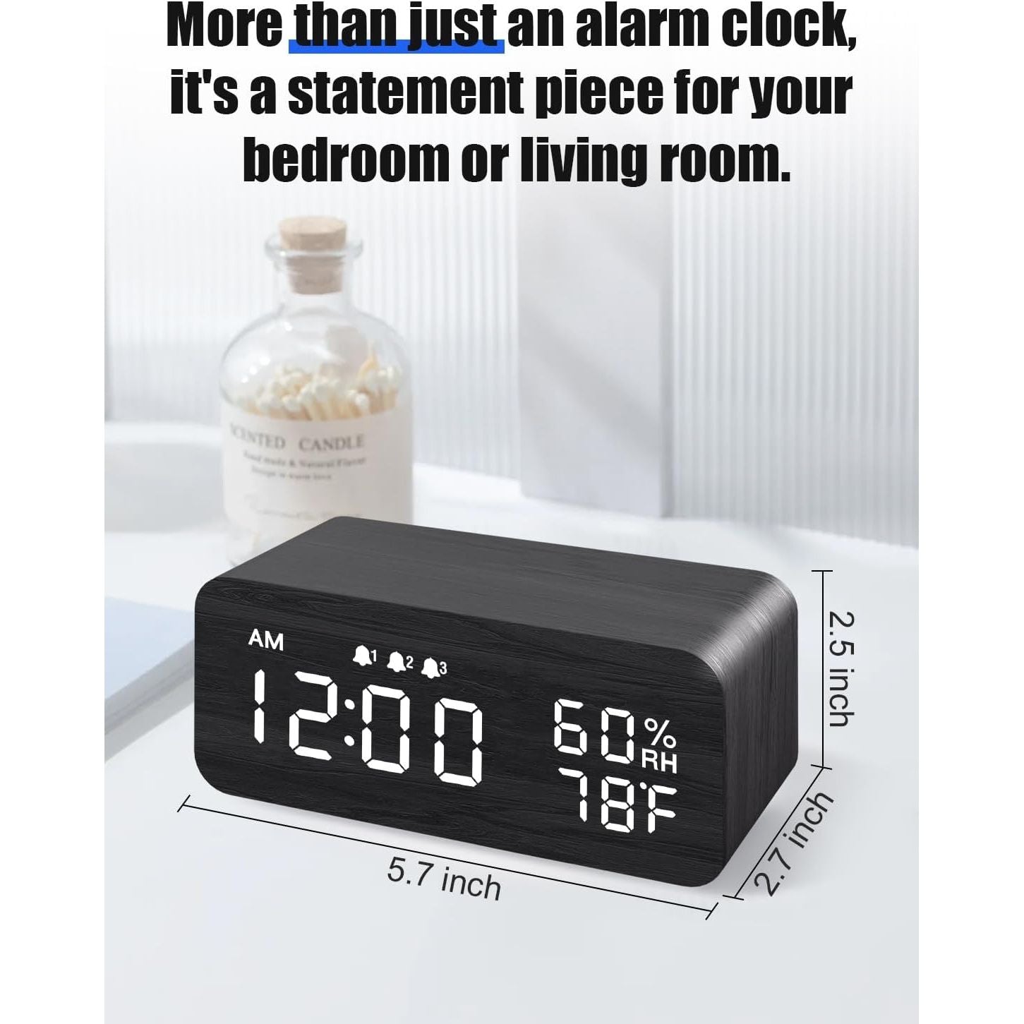 - JALL Wooden Digital Alarm Clock with Wireless Charging, Dimmable, Adjustable Volume, 3 Alarms, Weekday/Weekend Mode, Snooze, Digital Clock for Bedroom, Bedside, Office (Black)