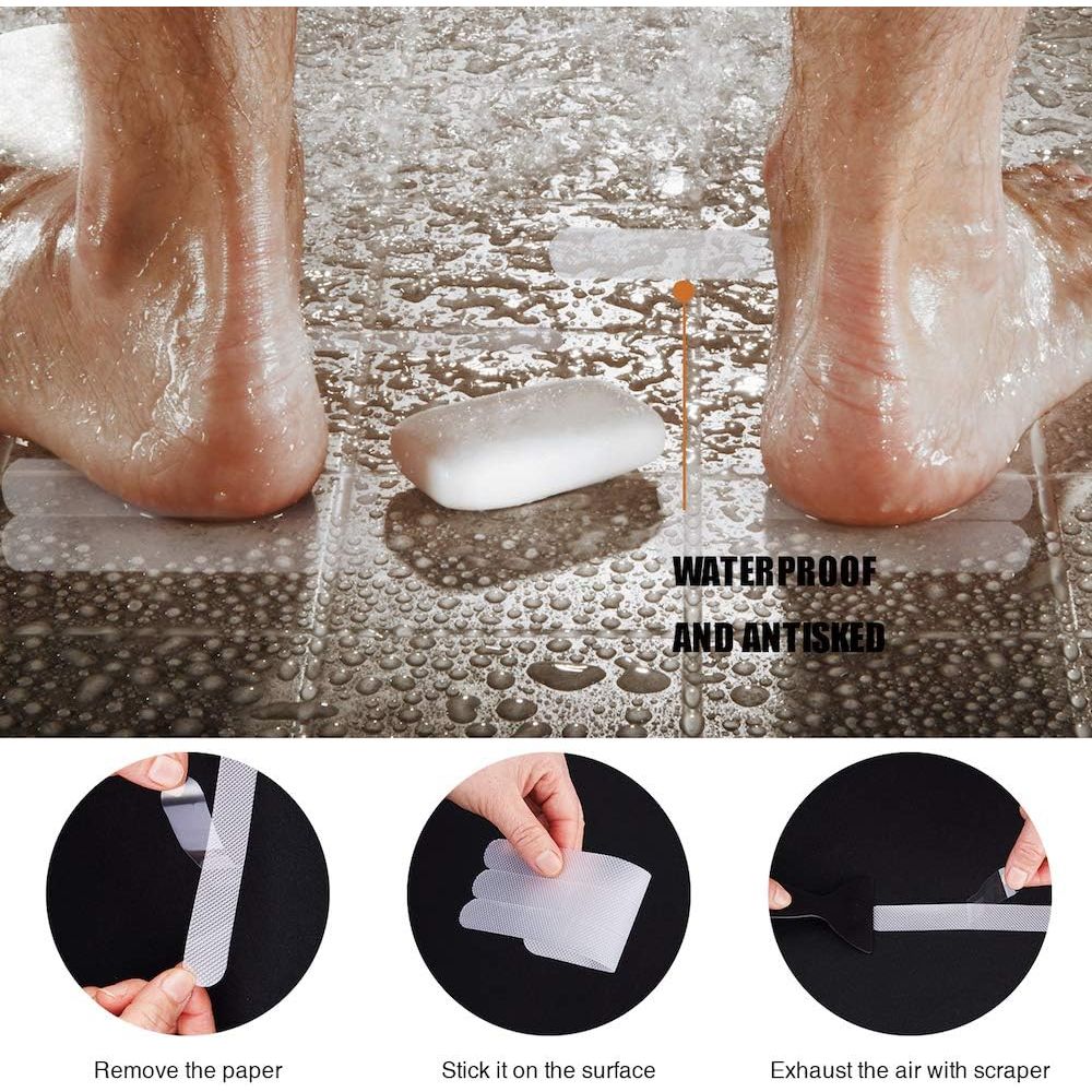 - Anti Slip Shower Stickers 24 PCS Safety Bathtub Strips Adhesive Decals with Premium Scraper for Bath Tub Shower Stairs Ladders Boats