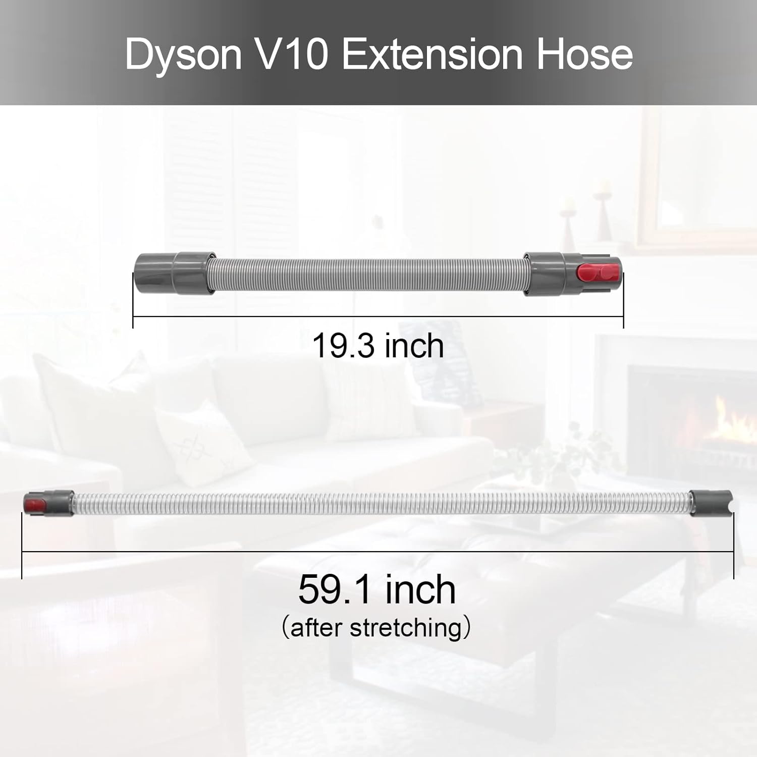 - Flexible Hose :This Dyson extension hose can extend to 63 Inches to reach more area. It is more convenient to use in your big house. Natural Length: 20.5 Inches