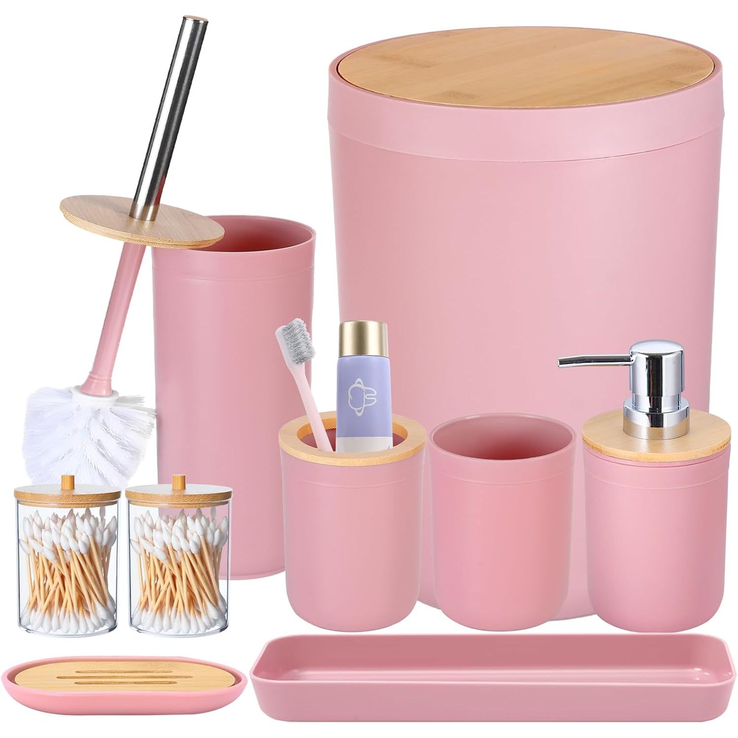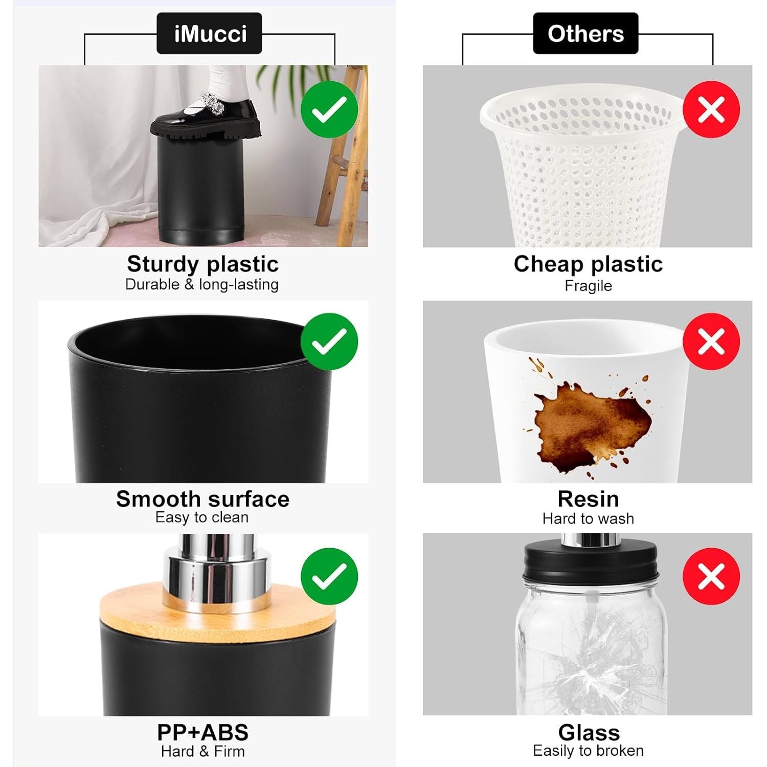 - STURDY AND DURABLE PLASTIC: iMucci 8 pieces bathroom accessory set is known for its incredible strength and long-lasting.Whether you're looking for a kit that extreme Enduring or stylish, its lightweight nature and versatility make it the perfect choice for a wide range of your bathroom decor.