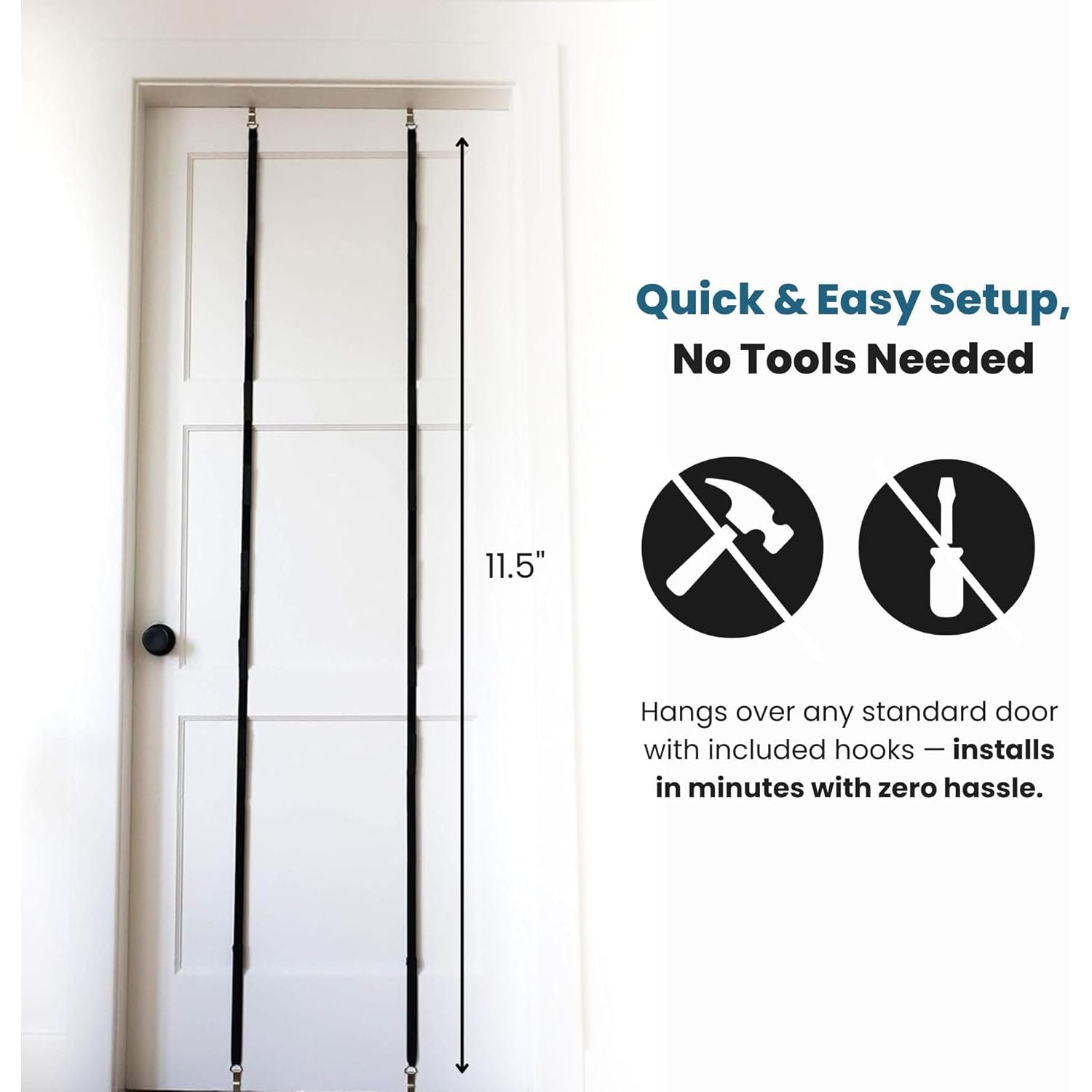 - Tool-Free Over-the-Door Installation: The elastic strap design fits over any standard interior door without screws or hardware. Installation takes seconds, with no risk of scratching doors or requiring under-door attachments.