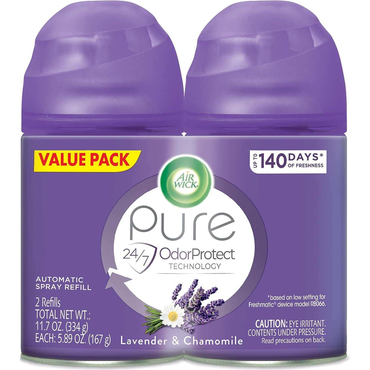 - Refills for use in Air Wick Automatic Air Freshener spray gadgets. The sprays bursts at 9, 18 or 40 minutes settings to achieve desired fragrance level
