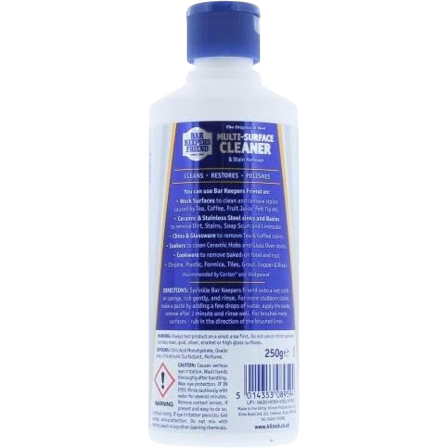 Bar Keepers Friend Multi-Purpose Surfaces Household Cleaner & Stain Remover Powder 250g - 1 Pack A - Also good with pans and these particularly difficult to clean sinks. - Ideal for stainless steel, porcelain, brass, copper, work surfaces, chrome, tiles and potting compound. - An easy to use all-purpose cleaning cream, especially good on robust stains. - Perfect on copper pans, worktops, vintage cars and glass fireplaces to call a fee. - 250 g bottle.