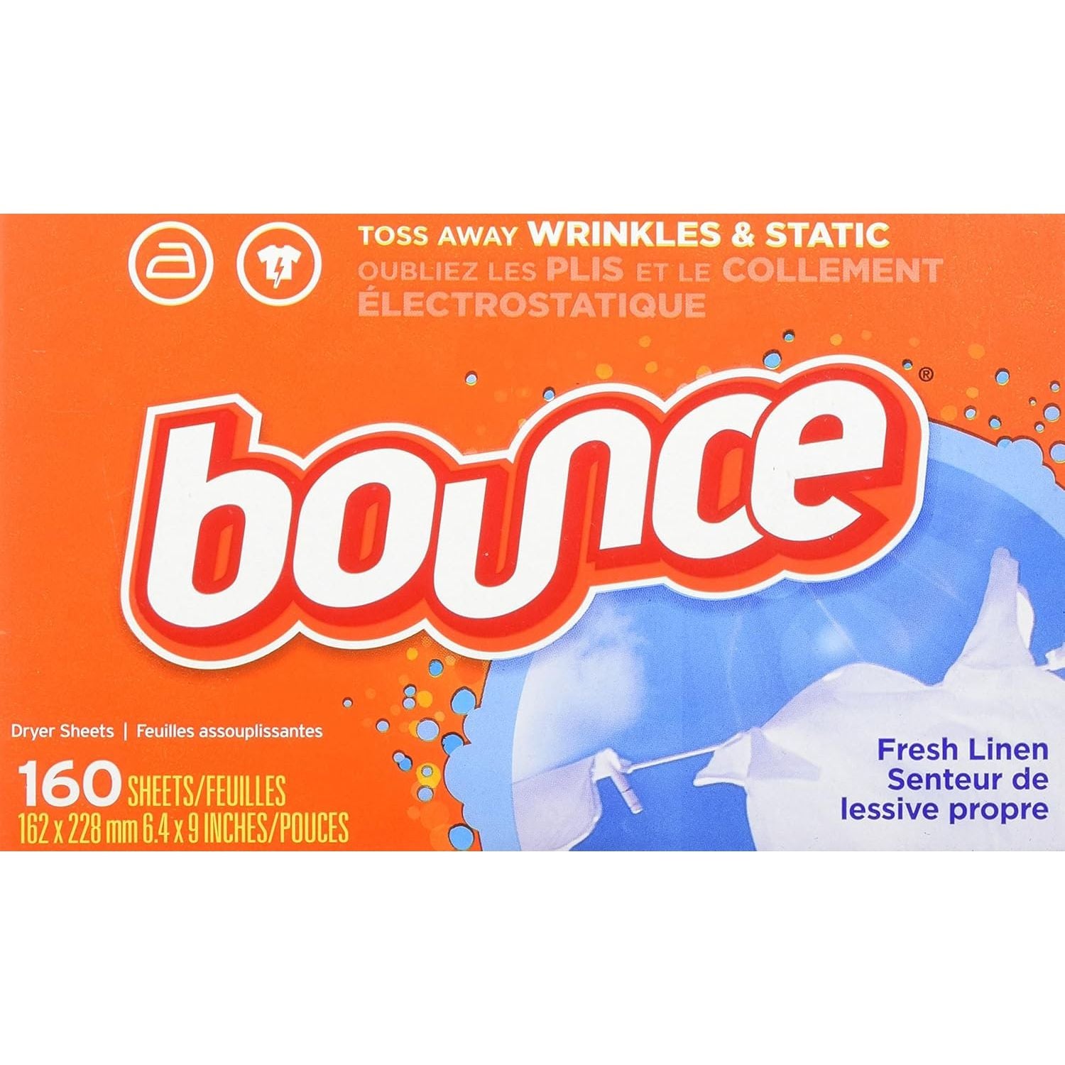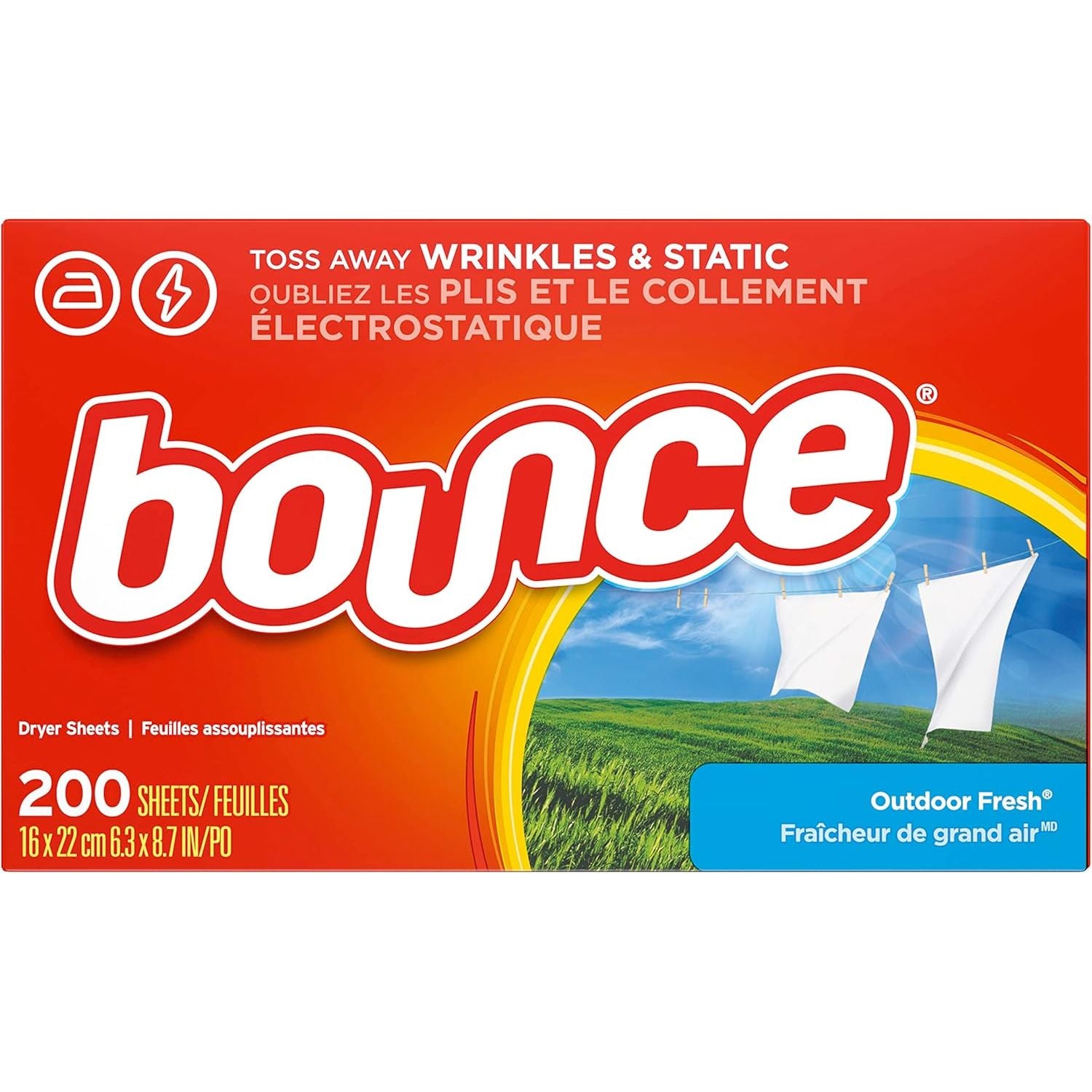 With Bounce Outdoor Fresh Dryer Sheets, static cling doesn't have to be a thing. Bounce Dryer Sheets help prevent static build up that occurs in the dryer so you can look and feel your best. America's #1 dryer sheet brand* is tough on wrinkles, too. Toss a sheet in the dryer to keep clothes looking their best and reduce wrinkles so your clothes will be ready to wear right away, making you look and feel confident. Bounce Outdoor Fresh Dryer Sheets don't stop there. From the moment you pull your laundry out of the dryer, Bounce Dryer Sheets give your clothes a fresh and lasting scent and a noticeably soft feel. Way less static, fewer wrinkles, softer fabrics, and an outdoor fresh scent is that easy. Toss in two Bounce Dryer Sheets for your average loads to iron less, fight more static, and add more softness and freshness. One will do for small loads, and if you're catching up on laundry and have an extra large load, toss in three! You can also use Bounce Dryer Sheets around the house. Tuck them in drawers or closets, put them in gym bags and suitcases, or stash them at the bottom of your trashcan to bring that Bounce Outdoor Fresh scent you know and love out of the dryer and into your home.*based on sales